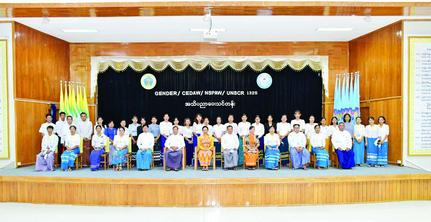 လူမှုဝန်ထမ်းဦးစီးဌာနက ကျင်းပသည့် GENDER/ CEDAW/ NSPAW/ UNSCR 1325 အသိပညာပေးသင်တန်းကို ယနေ့နံနက်ပိုင်းတွင်လူမှုဝန်ထမ်း၊ ကယ်ဆယ်ရေးနှင့် ပြန်လည်နေရာချထား ရေးဝန်ကြီးဌာန စုပေါင်းအစည်းအဝေး ခန်းမ၌ ကျင်းပသည်။