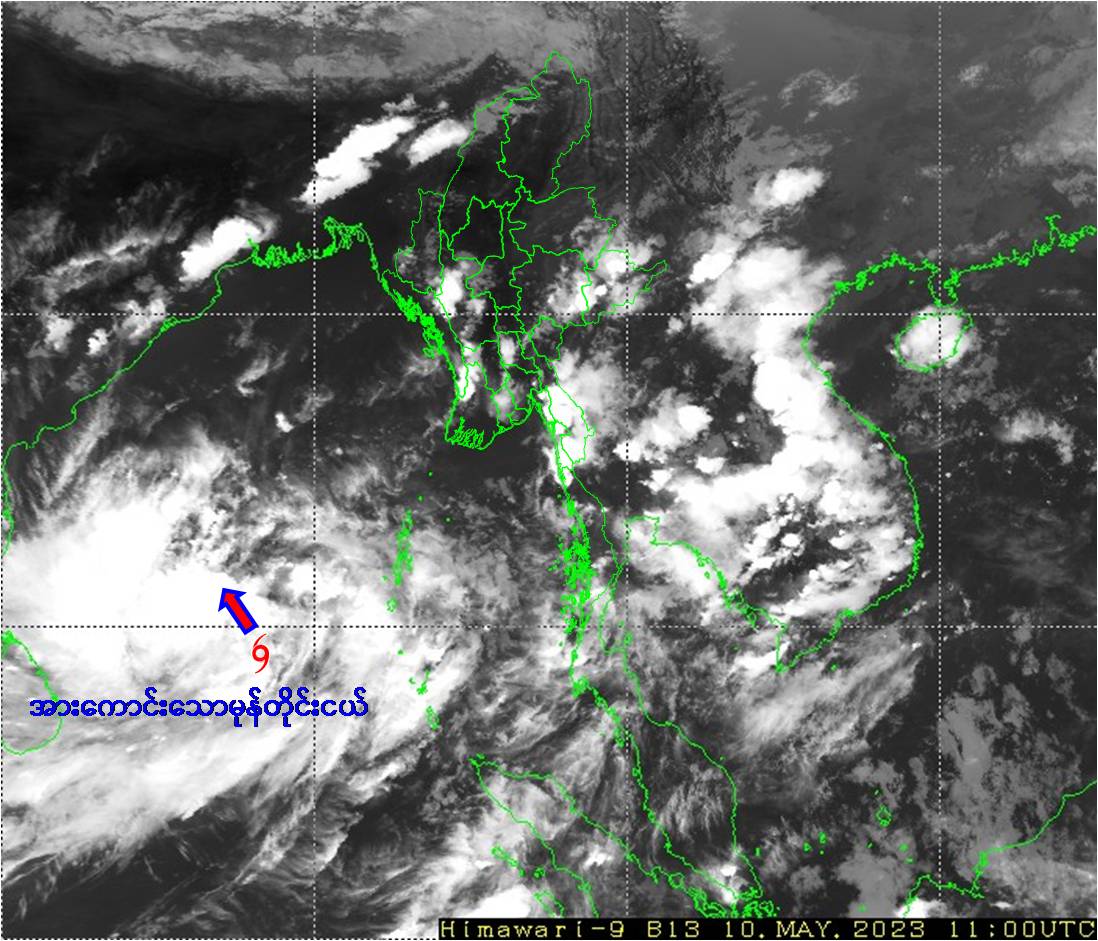 အားကောင်းသောမုန်တိုင်းငယ်(Deep Depression)၏အရှိန်ကြောင့် (၁၁.၅.၂၀၂၃) ရက်နေ့မှ (၁၅.၅.၂၀၂၃)ရက်နေ့အတွင်း နေပြည်တော်၊ စစ်ကိုင်းတိုင်းဒေသကြီး၊ မန္တလေးတိုင်းဒေသကြီး၊ မကွေးတိုင်းဒေသကြီး၊ ပဲခူးတိုင်းဒေသကြီး၊ ရန်ကုန်တိုင်းဒေသကြီး၊ ဧရာဝတီတိုင်းဒေသကြီး၊ တနင်္သာရီတိုင်းဒေသကြီး၊ ကချင်ပြည်နယ်၊ ရှမ်းပြည်နယ်၊ ချင်းပြည်နယ်၊ ရခိုင်ပြည်နယ်၊ ကယားပြည်နယ်၊ ကရင်ပြည်နယ်နှင့် မွန်ပြည်နယ်တို့တွင် နေရာစိပ်စိပ်မှ နေရာအနှံ့အပြား မိုးထစ်ချုန်းရွာပြီး၊ စစ်ကိုင်းတိုင်းဒေသကြီးအောက်ပိုင်း၊ မကွေးတိုင်းဒေသကြီး၊ ပဲခူးတိုင်းဒေသကြီး၊ ရန်ကုန်တိုင်းဒေသကြီး၊ ဧရာဝတီတိုင်းဒေသကြီး၊ တနင်္သာရီတိုင်းဒေသကြီး၊ ရခိုင်ပြည်နယ်၊ ကရင်ပြည်နယ်နှင့် မွန်ပြည်နယ်တို့တွင် ဒေသအလိုက်နှင့် နေပြည်တော်၊ စစ်ကိုင်းတိုင်းဒေသ ကြီးအထက်ပိုင်း၊ မန္တလေးတိုင်းဒေသကြီး၊ ကချင်ပြည်နယ်နှင့် ရှမ်းပြည်နယ်(မြောက် ပိုင်း)တို့တွင် နေရာကွက်၍ မိုးကြီးနိုင်ပါသည်။ သို့ဖြစ်ပါ၍ ယနေ့ညမှ (၁၁.၅.၂၀၂၃) ရက်နေ့အတွင်း မြစ်ဝကျွန်းပေါ်၊ မုတ္တမကွေ့၊ မွန်-တနင်္သာရီကမ်းရိုးတန်းတစ်လျှောက်နှင့် ကမ်းလွန်ပင်လယ်ပြင်တို့တွင် တစ်ခါတစ်ရံ မိုးသက်လေပြင်းများကျရောက်ပြီး လှိုင်းကြီးနိုင်ပါသည်။ မိုးသက်လေပြင်းကျစဉ် ရေပြင်/မြေပြင်လေသည် တစ်နာရီလျှင် (၃၅)မိုင်မှ မိုင်(၄၀)ခန့်အထိ တိုက်ခတ်နိုင်ပြီး၊ (၁၂.၅.၂၀၂၃)ရက်နေ့မှ (၁၄.၅.၂၀၂၃) ရက်နေ့အတွင်း မြစ်ဝကျွန်းပေါ်၊ ရခိုင်ကမ်းရိုးတန်းတစ်လျှောက်နှင့် ကမ်းလွန်ပင်လယ် ပြင်တို့တွင် မကြာခဏ မိုးသက်လေပြင်းများ ကျရောက်ပြီး လှိုင်းကြီးရာမှ လှိုင်းအလွန် ကြီးနိုင်ပါသည်။ မိုးသက်လေပြင်းကျစဉ် ရေပြင်/မြေပြင်လေသည် တစ်နာရီလျှင် မိုင်(၇၀)မှ မိုင်(၈၀)ခန့်အထိတိုက်ခတ်နိုင်ပါသည်။ မုတ္တမကွေ့၊ မွန်-တနင်္သာရီကမ်းရိုး တန်းတစ်လျှောက်နှင့် ကမ်းလွန်ပင်လယ်ပြင်တို့တွင် ရံဖန်ရံခါ မိုးသက်လေပြင်းများကျရောက်ပြီး လှိုင်းကြီးနိုင်ပါသည်။ မိုးသက်လေပြင်းကျစဉ် ရေပြင်/မြေပြင်လေသည် တစ်နာရီလျှင် မိုင်(၄၀)မှ (၄၅)မိုင်ခန့်အထိ တိုက်ခတ်နိုင်သည်ဟု ခန့်မှန်းရပါသည်။