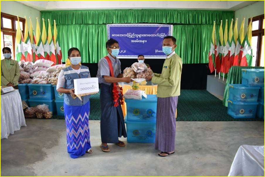 ရှမ်းပြည်နယ်(အရှေ့ပိုင်း)၊ မိုင်းဆတ်မြို့နယ်အတွင်း မေလ ၈ ရက်နေ့တွင် မိုးသည်းထန်စွာရွာသွန်းခြင်းနှင့် လေပြင်းတိုက်ခိုက်ခြင်းခံရသည့် အိမ်ထောင်စုဝင်မိသားစုများအား စားဝတ်နေရေးအဆင်ပြေစေရန်အတွက် ထောက်ပံ့ပစ္စည်းများပေးအပ်ခြင်းနှင့် လိုအပ်သည့်ဆေးဝါးကုသမှုများ ဆောင်ရွက်ပေးခြင်းတို့အား ယနေ့နံနက်ပိုင်းတွင် အဆိုပါမြို့ရှိ အထွေထွေအုပ်ချုပ်ရေးဦးစီးဌာနရုံး အစည်းအဝေးခန်းမနှင့် လေဘေးသင့်နေအိမ်များတွင် ဆောင်ရွက်ခဲ့ရာ တြိဂံဒေသတိုင်းစစ်ဌာနချုပ်ရှိ နယ်မြေခံတပ်နယ်မှ တာဝန်ရှိသူနှင့်အဖွဲ့ဝင်များ၊ ခရိုင်အဆင့်ဌာနဆိုင်ရာတာဝန်ရှိသူများ၊ မြို့မိမြို့ဖများ၊ လေဘေးသင့်အိမ်ထောင်စုများ တက်ရောက်ကြသည်။