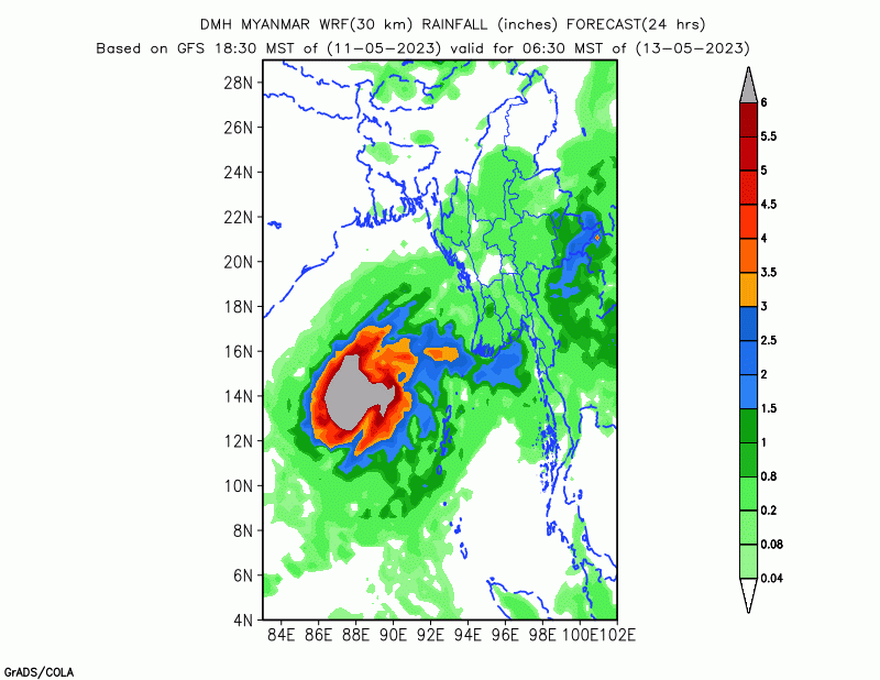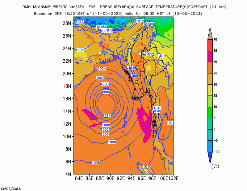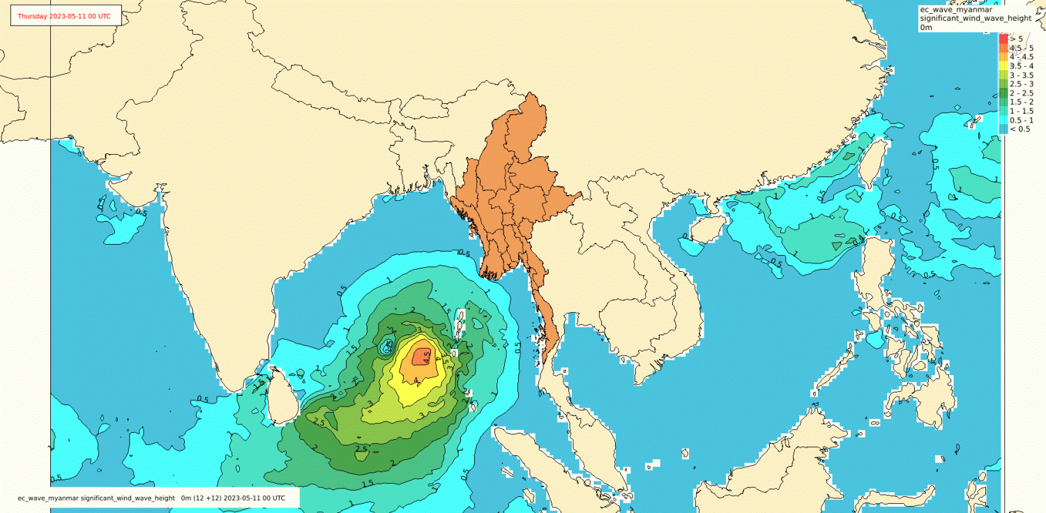 ဘင်္ဂလားပင်လယ်အော်တွင် အားအလွန်ကောင်းသော ဆိုင်ကလုန်းမုန်တိုင်း “မိုခါ” (MOCHA) သည် မြန်မာ့ကမ်းရိုးတန်းသို့ ဦးတည်တိုက်ခတ်နေပါသဖြင့် မိုးလေဝသနှင့်ဇလဗေဒညွှန်ကြားမှုဦးစီးဌာနမှ မြန်မာ့ကမ်းရိုးတန်းတစ်လျှောက်နှင့် ကမ်းလွန်ပင်လယ်ပြင်တို့ရှိ ကမ်းနီး/ ကမ်းဝေး ငါးဖမ်း ရေယာဉ်များ၊ သင်္ဘောများအနေဖြင့်လည်း ကြိုတင်သတိပြု ရှောင်ရှားနိုင်ပါရန် အသိပေးပြီး ဖြစ်ပါသဖြင့် အဆိုပါ မုန်တိုင်းသည် ယနေ့မှစ၍ နောက်(၄၈)နာရီအတွင်း စစ်တွေမြို့အနီးမှ ဖြတ်ကျော်ဝင်ရောက်မည်ဟုလည်း ခန့်မှန်းချက် ထုတ်ပြန်ထားပြီးဖြစ်ရာ လက်ရှိအခြေအနေတွင် မုန်တိုင်းသည် လေတိုက်နှုန်းအမြင့်ဆုံး တစ်နာရီမိုင် (၁၁၀)အထိ ရောက်ရှိနိုင်ပြီး လှိုင်းအမြင့်မှာလည်း (၁၃)ပေမှ (၁၆)ပေအထိ ရောက်ရှိနိုင်မည်ဖြစ်ပါသဖြင့် ငါးဖမ်းရေယာဉ် /လှေ/ သင်္ဘောများ အထူးအန္တရာယ်ရှိသည့်အတွက် ယနေ့မွန်းတည့် (၁၂:၀၀)နာရီ အချိန်မှစ၍ မြန်မာ့ကမ်းရိုးတန်းတစ်လျှောက်နှင့် ကမ်းလွန်ပင်လယ်ပြင်သို့ မည်သည့် ငါးဖမ်းရေယာဉ်/လှေ/ သင်္ဘောများ လုံးဝ (လုံးဝ) မထွက်ရန် ညွန်ကြားပါသည်။ ညွှန်ကြားချက်ကို လိုက်နာဆောင်ရွက်ခြင်း မရှိပါက သက်ဆိုင်ရာမှ လိုအပ်သလို အရေးယူဆောင်ရွက်သွားမည်ဖြစ်ပါကြောင်း အသိပေးအပ် ပါသည်။