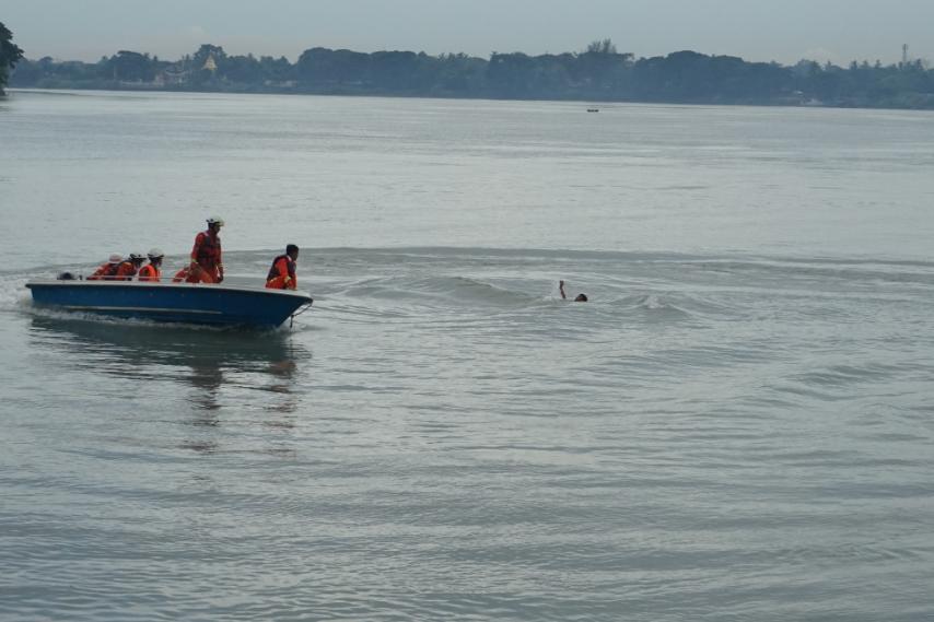 ၎င်းဇာတ်တိုက်လေ့ကျင့်မှုအား ခရိုင်မီးသတ်တပ်ဖွဲ့ လက်ထောက် ညွှန်ကြားရေးမှူး ဦးစိုးမိုးထွန်းဦးဆောင်သည့် ရှာဖွေကယ်ဆယ်ရေးတပ်ဖွဲ့ဝင် (၃၅)ဦးနှင့် ကြက်ခြေနီတပ်ဖွဲ့ဝင်များ၊ လူမှုကူညီရေးအသင်းများမှ မအူပင်မြို့ မင်းဧရာတံတားတွင် ရေနစ်သူရှာဖွေကယ်ဆယ်ခြင်း သရုပ်ပြမှုအား သံယံဇာတာရေးရာဝန်ကြီးဦးအုန်းမြင့်နှင့် တာဝန်ရှိသူများမှ ကြည့်ရှု့အားပေးခဲ့ကြသည်။ ၎င်းနောက် ဝန်ကြီးနှင့်တာဝန်ရှိသူများသည် သဘာဝဘေး အန္တရာယ်ကြုံတွေ့လာပါက အသုံးပြုရန် အသင့်ပြင်ဆင်ထားသည့် ရှာဖွေကယ်ဆယ်ရေးပစ္စည်းများအား ခရိုင်မီးသတ်တပ်ဖွဲ့ လက်ထောက် ညွှန်ကြားရေးမှုးမှ ရှင်းလင်းပြသခဲ့ရာ သယံဇာတရေးရာဝန်ကြီးမှကြည့်ရှု့ စစ်ဆေးခဲ့ပြီးလိုအပ်သည်များအား လမ်းညွှန်မှားကြားခဲ့ကြောင်း သိရသည်။