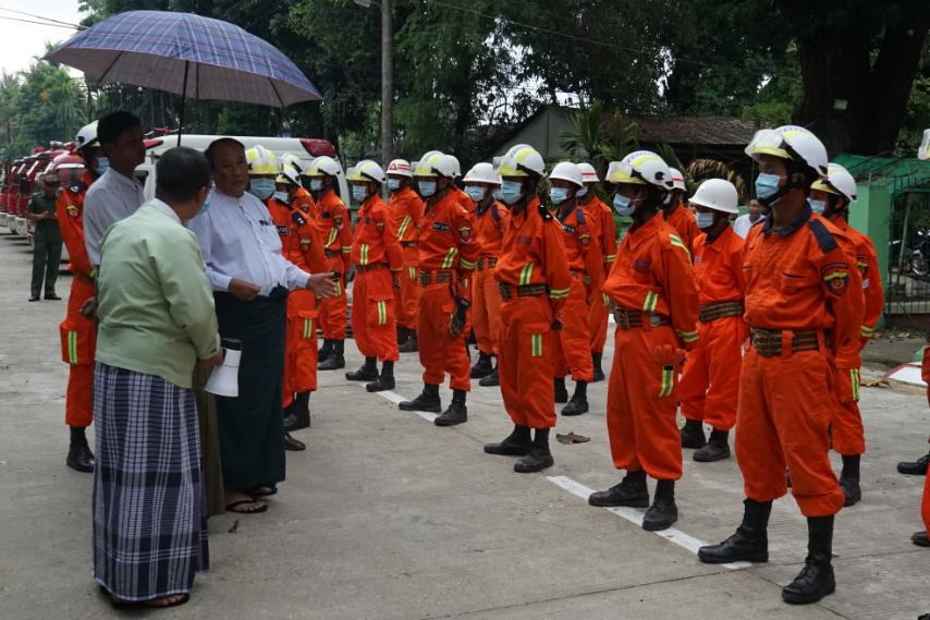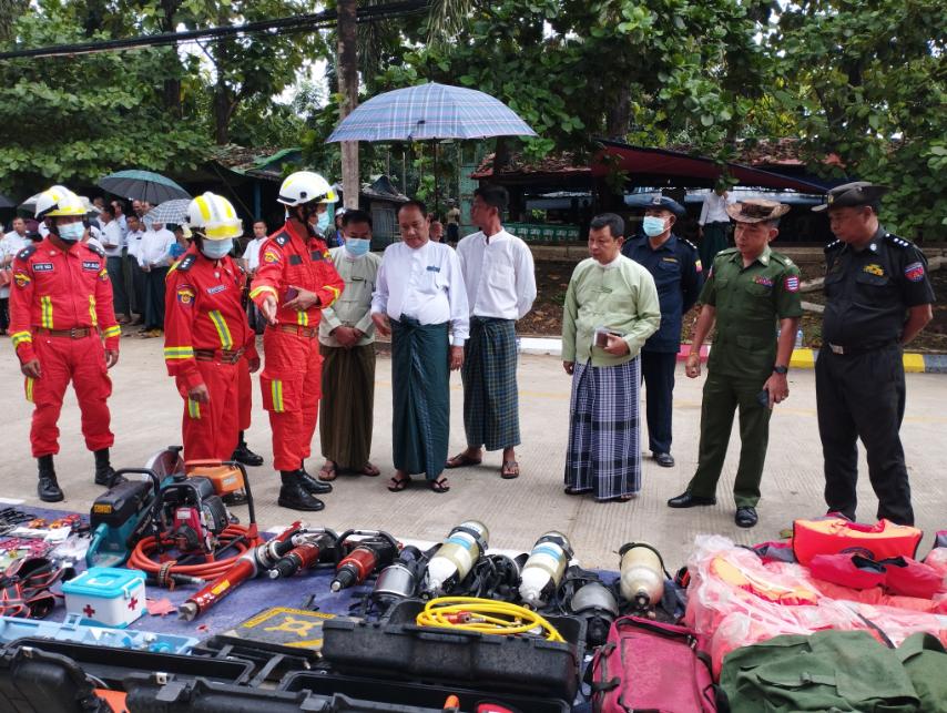 အဆိုပါ ရှာဖွေကယ်ဆယ်ရေးပစ္စည်းများနှင့် သဘာဝဘေးဇာတ် တိုက်လေ့ကျင့်နေမှုအား သယံဇာတရေးရာဝန်ကြီးဦးအုန်းမြင့်၊ မြို့နယ်စီမံ အုပ်ချုပ်ရေးအဖွဲ့ဥက္ကဋ္ဌ ဦးတိုးတိုးဝင်းနှင့်အဖွဲ့ဝင်များ၊ ဌာနဆိုင်ရာအကြီး အကဲများ၊ မီးသတ်တပ်ဖွဲ့ဝင်များ၊ ကြက်ခြေနီတပ်ဖွဲ့ဝင်များ၊ လူမှုကူညီရေး အဖွဲ့ဝင်များတက်ရောက်ကြည့်ရှု့အားပေးခဲ့ကြကြောင်းသိရသည်။