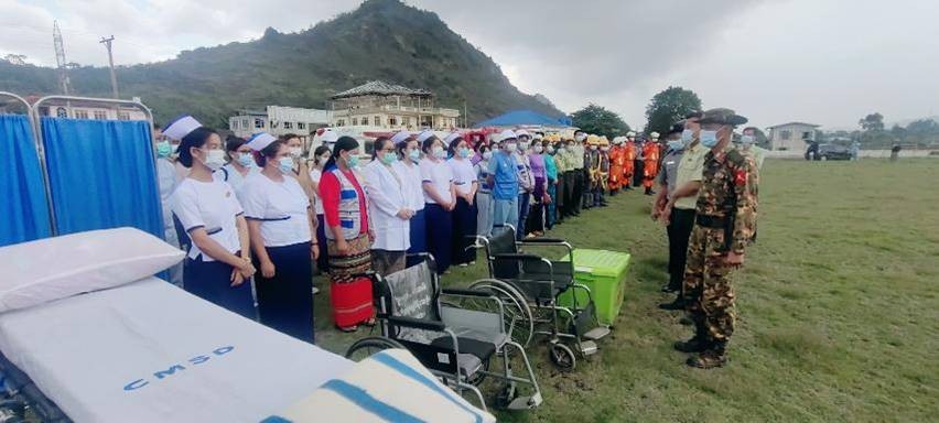 ထိုသို့ ဆောင်ရွက်လျက်ရှိရာ ယနေ့တွင် ရှမ်းပြည်နယ် (တောင်ပိုင်း)၊ ပင်လောင်းမြို့နယ်၊ ကံသာဦး ရပ်ကွက်ရှိ ပင်လောင်းမြို့နယ်အားကစားကွင်း၌ လည်းကောင်း၊ မွန်ပြည်နယ်၊ ချောင်းဆုံမြို့နယ်ရှိ နတ်မှော်ကျေးရွာ ဆိုင်ကလုန်းစင်တာ၌ လည်းကောင်း၊ စစ်ကိုင်းတိုင်းဒေသကြီး၊ ခန္တီတပ်နယ်၌ လည်းကောင်း အသီးသီးစုဖွဲ့၍ နယ်မြေခံတပ်မတော်သားများက ပြည်သူ့စစ်(ဌာနေ) တပ်ဖွဲ့ဝင်များ၊ မြန်မာနိုင်ငံရဲတပ်ဖွဲ့ဝင်များ၊ မီးသတ်တပ်ဖွဲ့ဝင်များ၊ ကြက်ခြေနီတပ်ဖွဲ့ဝင်များ၊ လူမှုကယ်ဆယ်ရေး အဖွဲ့များ၊ ဒေသခံတိုင်းရင်းသားပြည်သူများနှင့်ပူးပေါင်း၍ ဇာတ်တိုက်လေ့ကျင့်မှုများ၊ ပြင်ဆင်စုဖွဲ့မှုများကို ဆောင်ရွက်ကြသည်။ ယင်းသို့ ဆောင်ရွက်နေမှုများကို သက်ဆိုင်ရာ တိုင်းဒေသကြီးနှင့် ပြည်နယ်များမှ ဝန်ကြီးချုပ်များ၊ တိုင်းစစ်ဌာနချုပ်များမှ တိုင်းမှူးများနှင့် တာဝန်ရှိသူများက သွားရောက်ကြည့်ရှု အားပေးကြပြီး သဘာဝဘေးအန္တရာယ် ကြိုတင်ကာကွယ်ရေး ပစ္စည်းများနှင့် အထောက်အကူပြုပစ္စည်းများကို ထောက်ပံ့ပေးအပ်ကာ လိုအပ်သည်များ ညှိနှိုင်း ဆောင်ရွက်ပေးသည်။