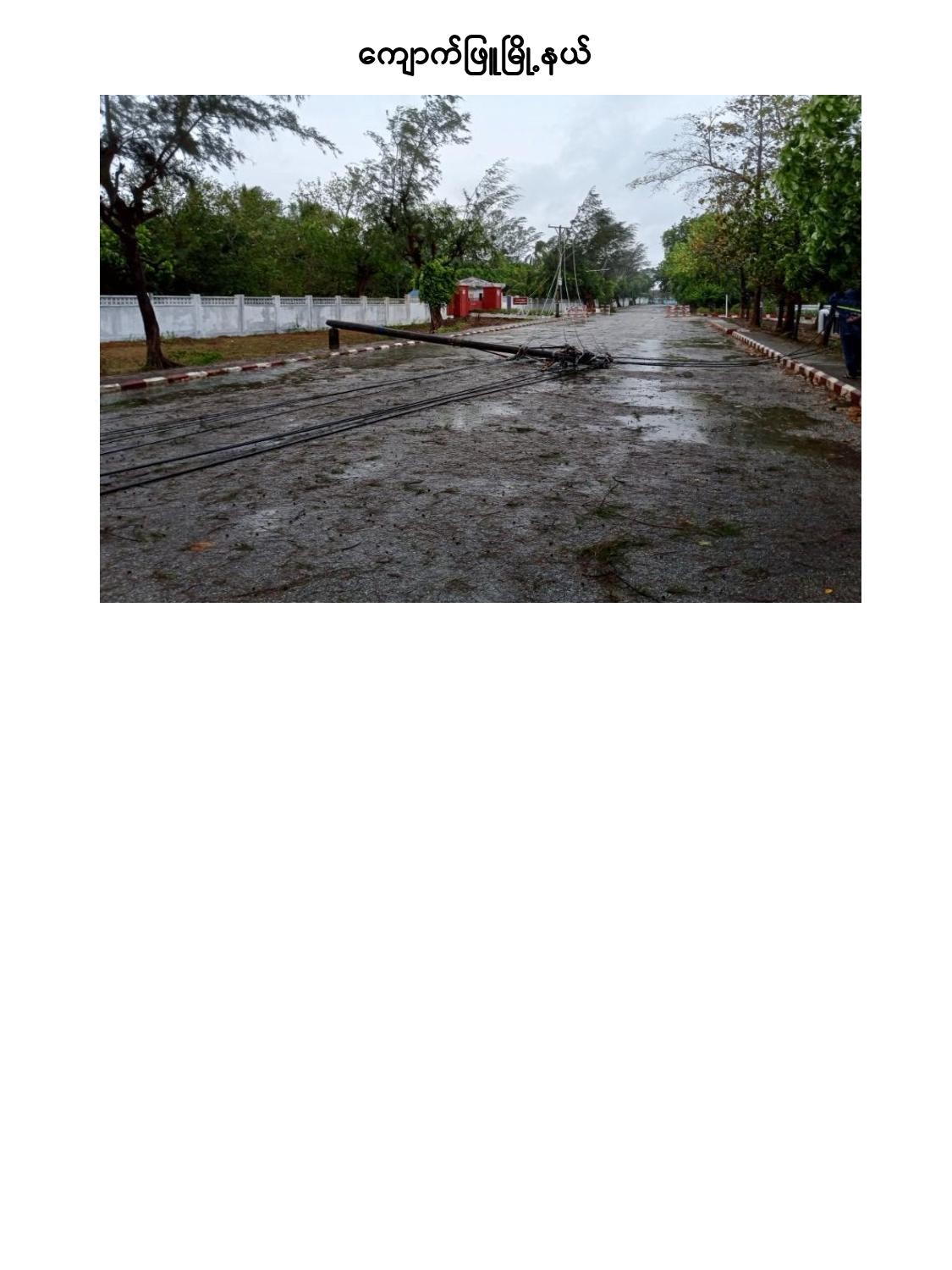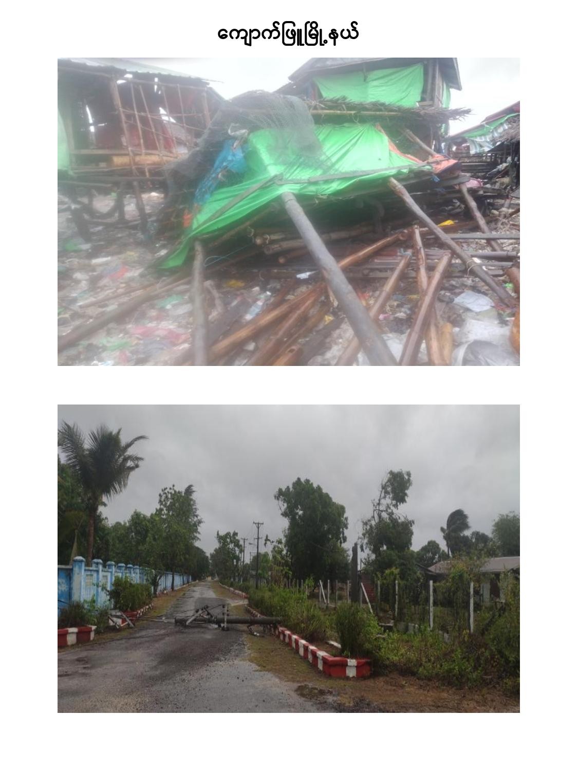 ယခုအခါ ဆိုင်ကလုန်းမုန်တိုင်း မိုခါ(MOCHA)သည် အားအလွန်ကောင်းသော ဆိုင်ကလုန်းမုန်တိုင်းအဖြစ်ရောက်ရှိကာ ယနေ့နံနက်ပိုင်းတွင် ရခိုင်ပြည်နယ်၊ စစ်တွေမြို့အနီးမှ ဖြတ်ကျော်ဝင်ရောက်လာခဲ့ပြီး ၎င်းဆိုင်ကလုန်းမုန်တိုင်းအရှိန်ကြောင့် သံတွဲလေဆိပ်ရှိ နားနေဆောင် အဆောက်အဦများပျက်စီးခြင်း၊ ဂွမြို့နယ်၊ ရွှေဥကွင်းကျေးရွာ၌ ထရန်စဖော်မာများပျက်စီးခြင်း၊ စစ်တွေ့မြို့၌ လူနေအိမ်များ၊ အဆောက်အဦများနှင့် သစ်ပင်များပျက်စီးခြင်း၊ ကျောက်ဖြူမြို့နှင့် ပတ်ဝန်းကျင်ကျေးရွာများ၌ ကမ်းစပ်ရှိ မော်တော်ဘုတ်များ၊ လူနေအိမ်များ၊ လမ်းမီးတိုင်များနှင့် ဆက်သွယ်ရေးတာဝါတိုင်များ ပျက်စီးခြင်း၊ ရန်ကုန်တိုင်းဒေသကြီး၊ ကိုးကိုးကျွန်း၌ အားကစားကွင်းရှိ အဆောက်အဦများ အမိုးများပျက်စီးခြင်းများ ဖြစ်ပေါ်ခဲ့သည်။