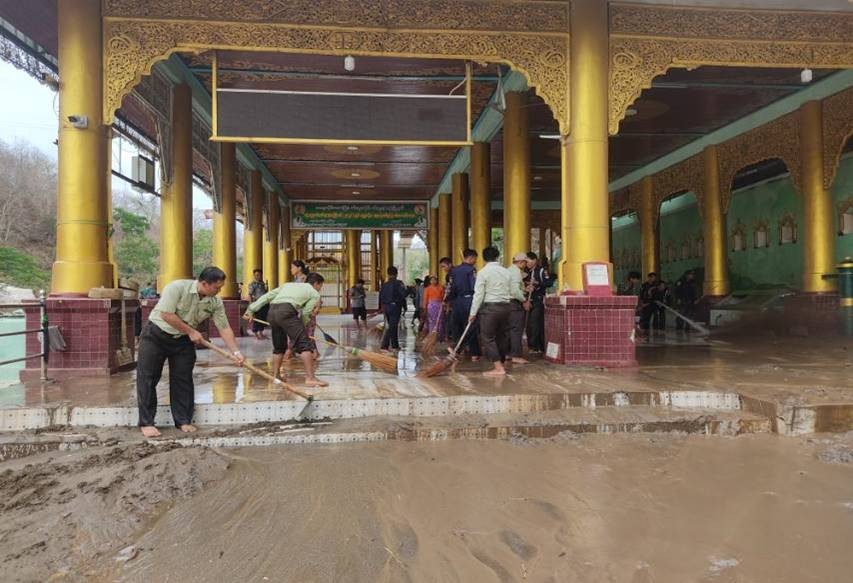 ဆိုင်ကလုန်းမုန်တိုင်း (မိုခါ) တိုက်ခတ်မှုကြောင့် မိုးသည်းထန်စွာရွာသွန်းပြီး မကွေးတိုင်းဒေသကြီး၊ မင်းဘူးခရိုင်၊ မင်းဘူးမြို့နယ်၊ စကုမြို့၊ ဘုရားရွာအုပ်စု၊ ဘုရားကျေးရွာရှိ မန်းရွှေစက်တော်ဘုရား အောက်စက်တော်ရာရင်ပြင်၌ မန်းချောင်းရေ မြင့်တက်မှုကြောင့် ရေဝင်ရောက်မှုများဖြစ်ပေါ်ခဲ့ပြီး ရေပြန်လည်ကျဆင်းသွားချိန်တွင် တင်ကျန်ခဲ့သည့် နုန်းမြေများ၊ သဲများ၊ အမှိုက်များအား ယနေ့နံနက်ပိုင်းတွင် အလယ်ပိုင်း တိုင်းစစ်ဌာနချုပ်မှ နယ်မြေခံတပ်မတော်သား၊ မြို့နယ်စီမံအုပ်ချုပ်ရေး အဖွဲ့ဝင်များ၊ မြန်မာနိုင်ငံရဲတပ်ဖွဲ့ဝင်များ၊ မီးသတ်တပ်ဖွဲ့ဝင်များ၊ ကျေးရွာအုပ်ချုပ် ရေးအဖွဲ့ဝင်များနှင့် ဒေသခံပြည်သူများက စုပေါင်းသန့်ရှင်းရေးပြုလုပ်ခဲ့ကြောင်း သတင်းရရှိသည်။