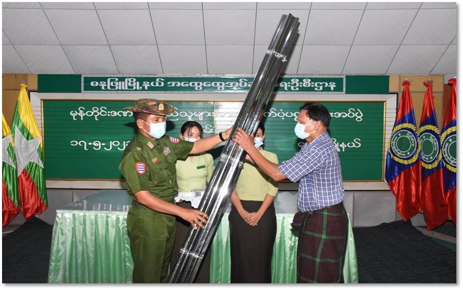 ဧရာဝတီတိုင်းဒေသကြီး၊ ဓနုဖြူမြို့နယ်အတွင်းရှိ မုန်တိုင်းဒဏ်သင့်ပြည်သူများအား အိမ်မိုးသွပ်များ၊ သွပ်သံများ၊ ဆန်၊ ဆီ၊ စားသောက်ဖွယ်ရာများနှင့် ထောက်ပံ့ငွေများပေးအပ်ခြင်းကို ယနေ့နေ့လယ်ပိုင်းတွင် အဆိုပါမြို့နယ်ရှိ အထွေထွေအုပ်ချုပ်ရေးဦးစီးဌာနရုံး၌ပြုလုပ်ရာ အနောက်တောင်တိုင်းစစ်ဌာနချုပ် တိုင်းမှူးဗိုလ်မှူးချုပ် ကြည်ခိုင်နှင့်တာဝန်ရှိသူများ၊ မအူပင်ခရိုင်သဘာဝဘေးအန္တရာယ် ကြီးကြပ်မှုကော်မတီဥက္ကဋ္ဌ၊ ခရိုင်/မြို့နယ် စီမံအုပ်ချုပ်ရေးအဖွဲ့ဝင်များ၊ မြို့နယ်ဆင့်ဌာနဆိုင်ရာများ၊ မြို့မိမြို့ဖများ၊ လူမှုရေးအသင်းအဖွဲ့များနှင့် လေဘေးသင့်ပြည်သူများ တက်ရောက်ကြသည်။
