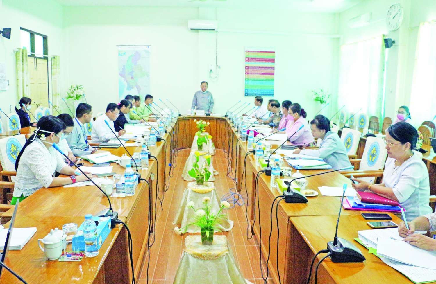 ရှေးဦးစွာ အမျိုးသားသဘာဝဘေးအန္တရာယ်ဆိုင်ရာစီမံခန့်ခွဲမှုကော်မတီ ဒုတိယဥက္ကဋ္ဌ (၁)၊ နိုင်ငံတော်စီမံအုပ်ချုပ်ရေးကောင်စီ အဖွဲ့ဝင်ဒုတိယဝန်ကြီးချုပ်နှင့် ပြည်ထဲရေးဝန်ကြီးဌာနပြည်ထောင်စုဝန်ကြီး ဒုတိယဗိုလ်ချုပ်ကြီးစိုးထွဋ်က ဆိုင်ကလုန်းမုန်တိုင်း မိုခါ (MOCHA) ဘေးဒဏ်သင့်ဒေသများ၌ အရေးပေါ်တုံ့ပြန်ရေး လုပ်ငန်း များ၊ ကူညီကယ်ဆယ်ရေးလုပ်ငန်းများ၊ ပြန်လည်ထူထောင်ရေး လုပ်ငန်းများ ဆောင်ရွက်ရာတွင် ပြည်တွင်း/ပြည်ပမှ အလှူငွေနှင့်ပစ္စည်းများ လှူဒါန်းလျက်ရှိရာ ပစ္စည်းများ လက်ခံရယူရေး၊ ဖြန့်ခွဲရေးနှင့်စပ်လျဉ်း၍ အဖွဲ့များဖွဲ့စည်းကာ စနစ်တကျလက်ခံဖြန့်ခွဲနိုင်ရေး ဆောင်ရွက်လျက်ရှိကြောင်း၊ အလှူငွေများနှင့်စပ်လျဉ်း၍လည်း ပြည်တွင်း/ပြည်ပမှ စေတနာရှင်များပေးပို့လှူဒါန်းနိုင်သည့် ငွေစာရင်းအမှတ်များကို အများပြည်သူသိရှိစေရေး ကြေညာဆောင်ရွက်ထားပါကြောင်း၊ သို့ရာတွင် ဘေးသင့်သူများ၊ ဘေးဒဏ်သင့်ဒေသများအပေါ် စာနာထောက်ထားသော မြန်မာလူမျိုးတို့၏စေတနာသဒ္ဓါတရားထက်သန်မှု၊ ကူညီဆောင်ရွက်လိုမှုစိတ်ထားများအရ ငွေကြေးလှူဒါန်းမှုအနည်းအများမဆို လွယ်ကူစွာလှူဒါန်းနိုင်ရေး ဆောင်ရွက်ပေးရန်လိုကြောင်း၊ အများပြည်သူ လွယ်ကူစွာလှူဒါန်းနိုင်ရေး နည်းလမ်းများစဉ်းစားရာတွင် ဥပဒေ၊ ဘဏ္ဍာရေးစည်းမျဉ်း၊ စည်းကမ်းများနှင့်ညီညွတ်ရန်လည်းလိုကြောင်း၊ ဥပဒေနှင့်အညီ အမြန်ဆုံးဆောင်ရွက်နိုင်မည့် နည်းလမ်းများကို ဝိုင်းဝန်းဆွေးနွေးကြရန် ပြောကြားသည်။