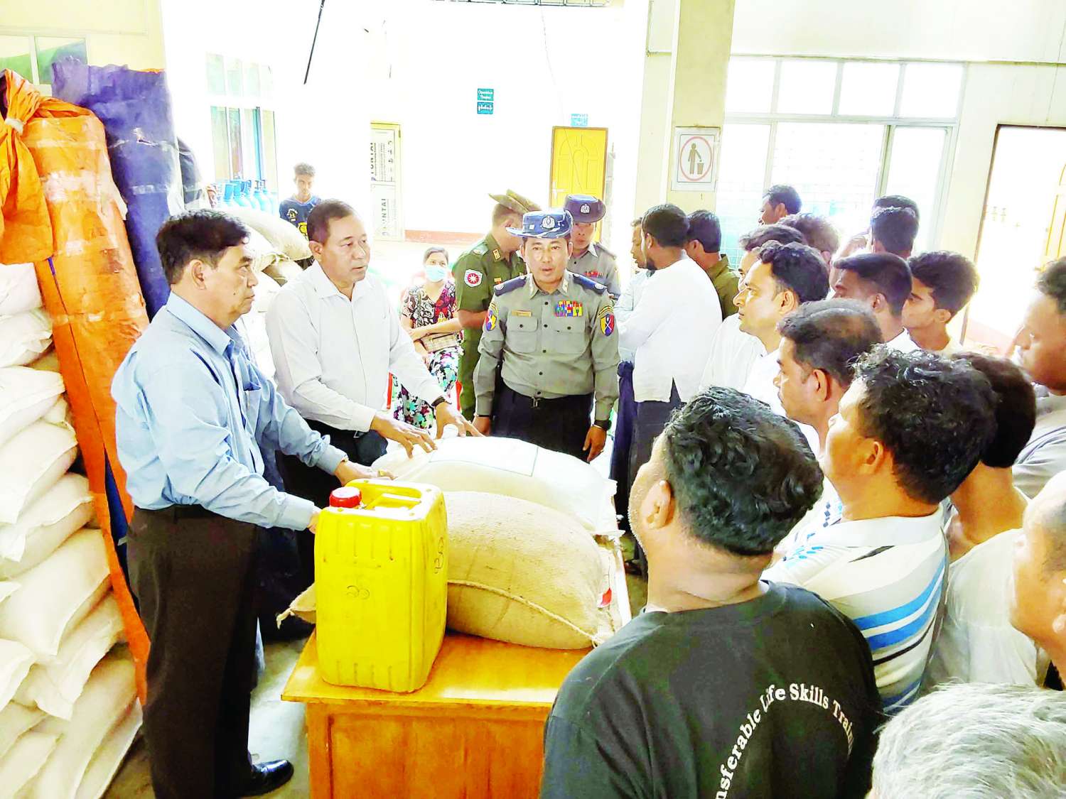 နယ်စပ်ရေးရာဝန်ကြီးဌာန ပြည်ထောင်စုဝန်ကြီးဒုတိယဗိုလ်ချုပ်ကြီးထွန်းထွန်း နောင်နှင့် ရခိုင်ပြည်နယ်ဝန်ကြီးချုပ် ဦးထိန်လင်းတို့သည် စစ်တွေတပ်နယ်မှ တပ်မတော်အရာရှိကြီးများ၊ ဌာနဆိုင်ရာတာဝန်ရှိသူများနှင့်အတူ ယနေ့မွန်းလွဲပိုင်းက စစ်တွေမြို့နယ်၊ သက္ကယ်ပြင်ကျေးရွာသို့သွားရောက်ပြီး သက္ကယ်ပြင် တိုက်နယ်ဆေးရုံ၌ IDP စခန်းများမှ မုန်တိုင်းဒဏ်သင့် ဘင်္ဂါလီစခန်းတာဝန်ခံများနှင့်တွေ့ဆုံပြီး ထောက်ပံ့ပစ္စည်းများ ပေးအပ်ကြသည်။