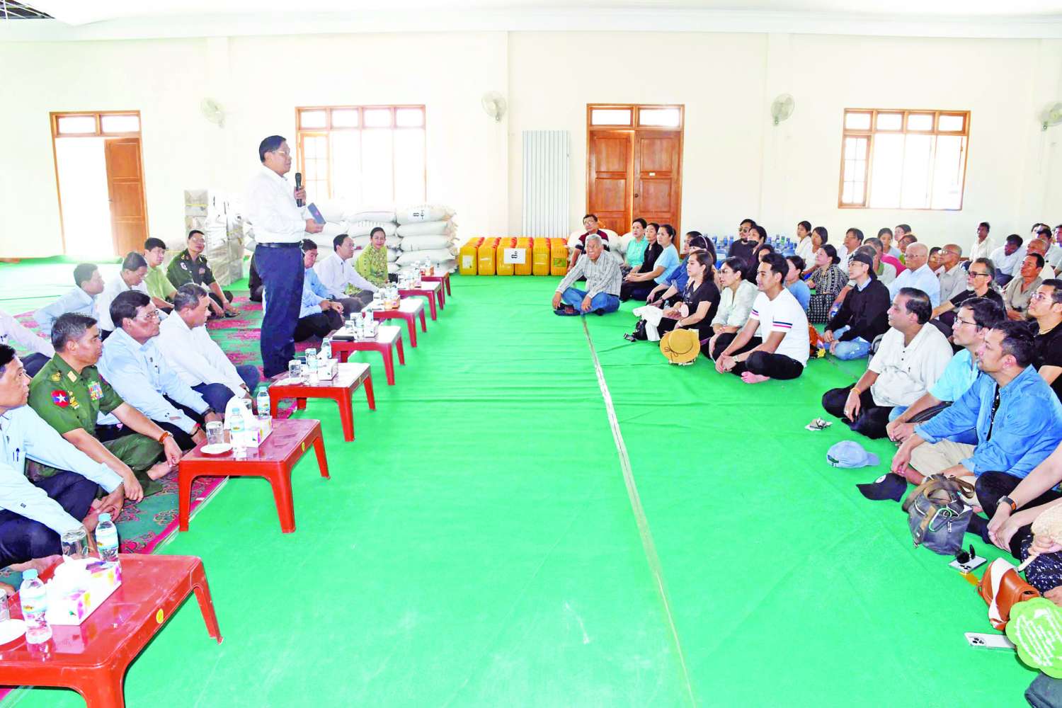 မုန်တိုင်းဒဏ်ခံရသည့် ပြည်သူများနှင့်တွေ့ဆုံရာတွင် နိုင်ငံတော် စီမံအုပ်ချုပ်ရေးကောင်စီအဖွဲ့ဝင် ဒုတိယဝန်ကြီးချုပ်နှင့်ပို့ဆောင်ရေးနှင့် ဆက်သွယ်ရေးဝန်ကြီးဌာန ပြည်ထောင်စုဝန်ကြီး ဗိုလ်ချုပ်ကြီး တင်အောင်စန်းက မိမိတို့ လာရောက်ခြင်းမှာ ရခိုင်ပြည်နယ်အတွင်း မေ ၁၄ ရက်က မိုခါ မုန်တိုင်းဒဏ်ခံခဲ့ရသဖြင့် ပျက်စီး ဆုံးရှုံးမှုများနှင့် ပြည်သူများ၏ကြုံတွေ့နေရသော အခက်အခဲများကိုသိရှိပြီး လိုအပ်သည်များ ကူညီဖြည့်ဆည်း ဆောင်ရွက်ပေးရန်လာခြင်းဖြစ်ကြောင်း၊ ရခိုင် ပြည်နယ်အတွင်း မုန်တိုင်းဒဏ်ခံရသော အခြေအနေများကို ရခိုင်ပြည်နယ်မြောက်ပိုင်းနှင့် တောင်ပိုင်းဒေသများသို့ မိမိတို့နှစ်ဖွဲ့ခွဲ၍ ကွင်းဆင်းကြည့်ရှုစစ်ဆေးပြီး အရေးကြီးလိုအပ်ချက်များကို ဖြည့်ဆည်းဆောင်ရွက်ပေးရန် ရောက်ရှိလာခြင်းဖြစ်ကြောင်း၊ နိုင်ငံတော်ဝန်ကြီးချုပ်ဗိုလ်ချုပ်မှူးကြီး မင်းအောင်လှိုင်သည်