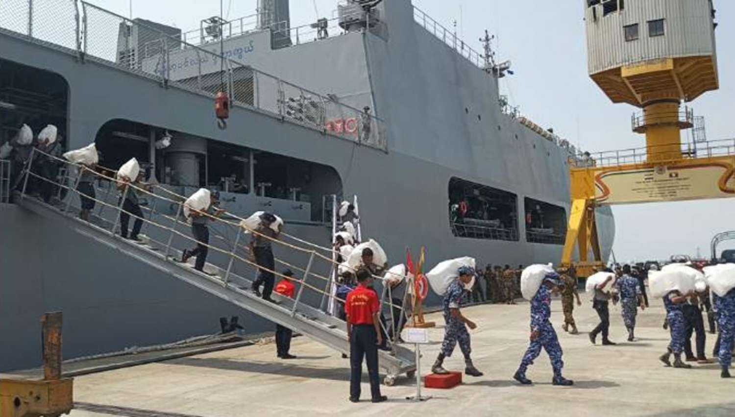 တပ်မတော်(ရေ)မှ စစ်ရေယာဉ်(မုတ္တမ)သည် အလွန့်အလွန်အားကောင်းသော ဆိုင်ကလုန်းမုန်တိုင်း “မိုခါ”(Mocha)ကြောင့် ရခိုင်ပြည်နယ်အတွင်း သဘာဝဘေး အန္တရာယ်ကျရောက်သောဒေသများရှိ ပြည်သူလူထုအတွက် လိုအပ်သည့် ထောက်ပံ့ရေးပစ္စည်းများဖြစ်သော ဆန်၊ ရေသန့်၊ ခေါက်ဆွဲခြောက်၊ ဒီဇယ်၊ အဝတ် အထည်၊ မီးစက်၊ မိုးကာတဲများနှင့် တာပေါ်လင်အစများ၊ သွပ်နှင့်ဆက်စပ်ပစ္စည်းများ၊ ချိန်းဆောများ၊ စားအုန်းဆီများ၊ စည်သွပ်ဘူးများ၊ MPT Mobile Van ကားများ၊ ရေသန့်စင် စက်ကားများ စုစုပေါင်း တန် ၁၀၀၀ ခန့်အား လည်းကောင်း၊ စစ်တွေမြို့အတွင်း မုန်တိုင်း ဒဏ်ကြောင့် ပျက်စီးခဲ့ရသည့် လျှပ်စစ်မီးကြိုးများအား ပြင်ဆင်နိုင်ရန် လျှပ်စစ်လုပ်သား ၁၀၄ ဦး အပါအဝင် လူပေါင်း ၁၁၆ ဦးအား တင်ဆောင်၍ မေ ၁၆ ရက် နံနက်ပိုင်းတွင် ရန်ကုန်မြို့မှ စတင်ထွက်ခွာခဲ့ပြီး စစ်တွေမြို့ Essar တံတားသို့ မေ ၁၈ ရက် နံနက်ပိုင်းတွင် ရောက်ရှိဆိုက်ကပ်၍ လိုအပ်သည့်ကူညီ ကယ်ဆယ်ရေးလုပ်ငန်းများ ဆောင်ရွက် ပေးလျက်ရှိပါသည်။