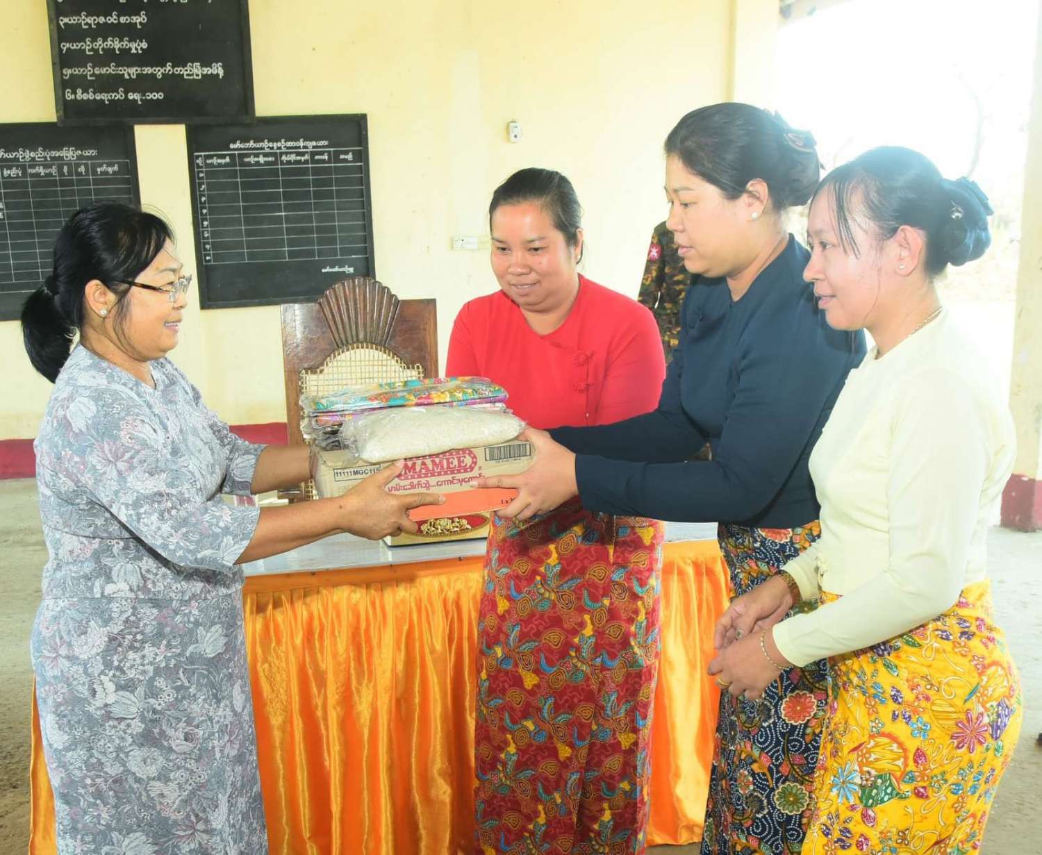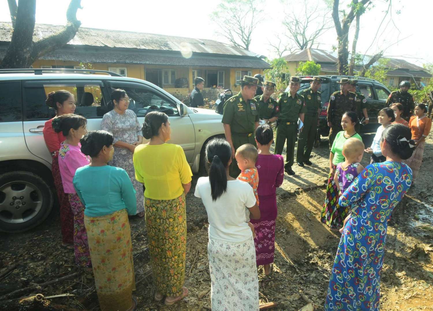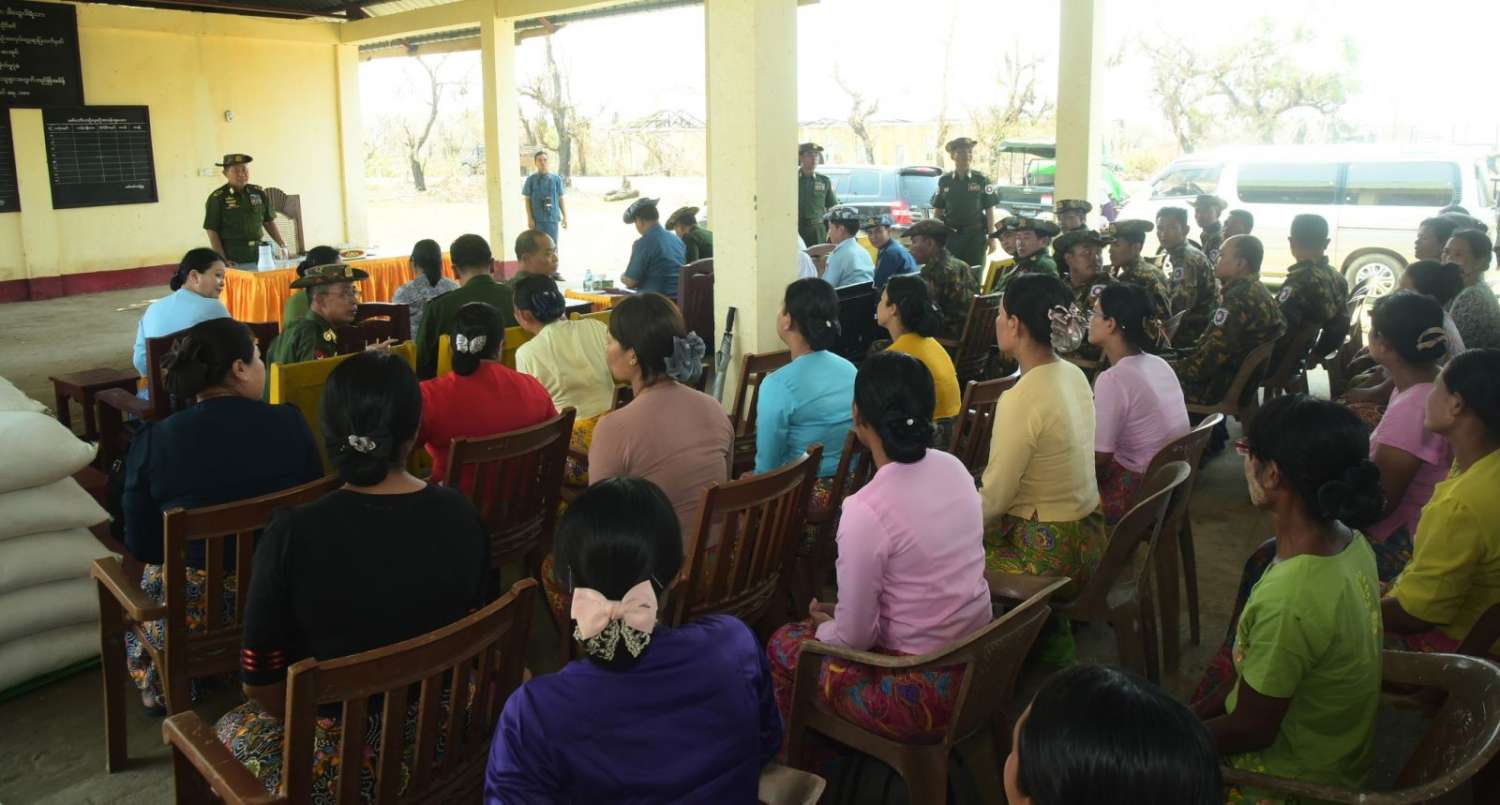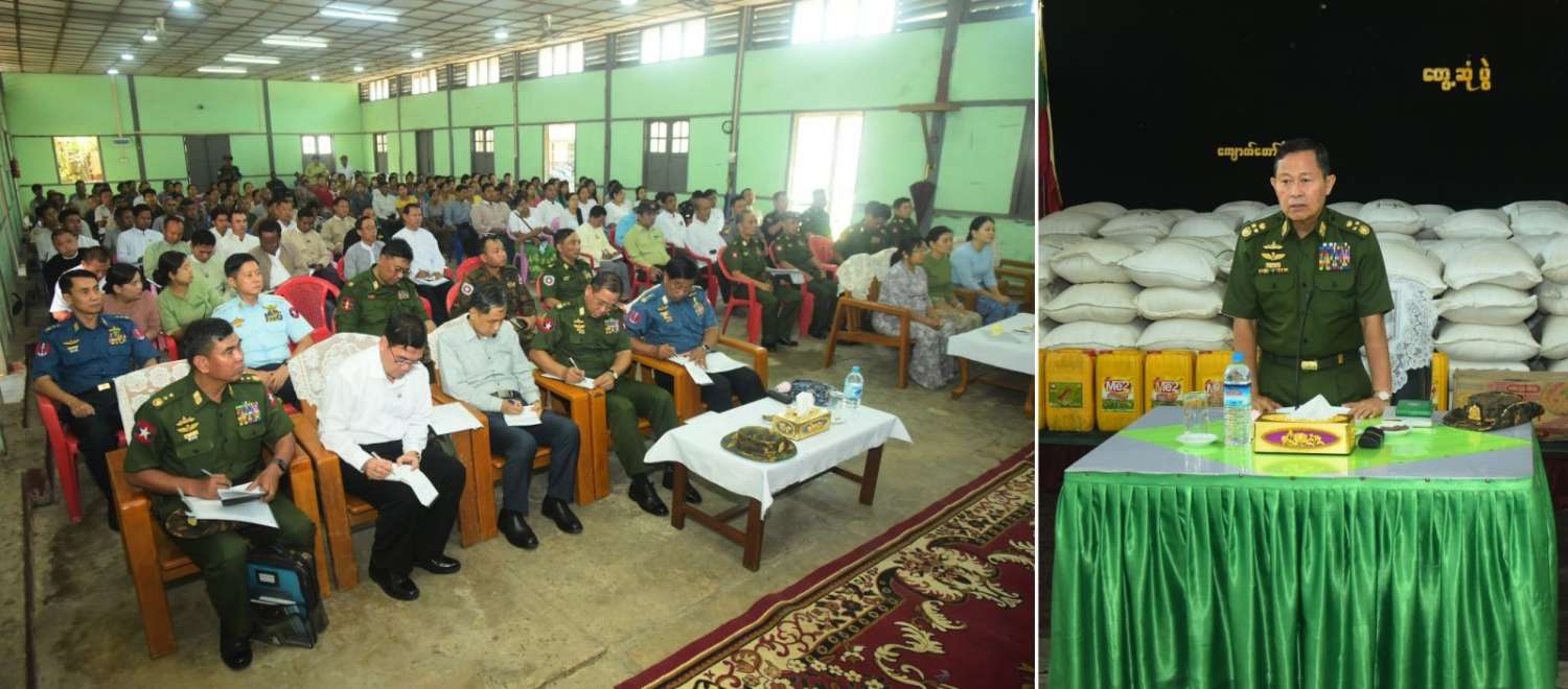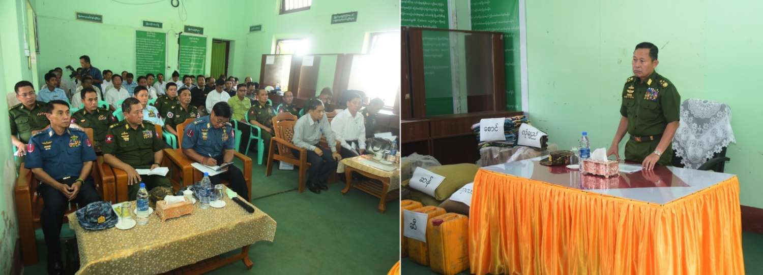 ထို့နောက် တက်ရောက်လာကြသည့် မြို့နယ်အလိုက်ဌာနဆိုင်ရာတာဝန်ရှိသူများနှင့် မြို့မိ၊ မြို့ဖများက ဆိုင်ကလုန်းမုန်တိုင်း(မိုခါ)တိုက်ခိုက်မှုကြောင့် နေအိမ်အဆောက်အဦများ၊ စာသင်ကျောင်းများ၊ ဆေးရုံများနှင့် ဌာနဆိုင်ရာအဆောက်အဦများ ပျက်စီးဆုံးရှုံးခဲ့မှုအခြေအနေများနှင့် အခြားလိုအပ်သည်များကို ရှင်းလင်းတင်ပြကြရာ အမျိုးသားသဘာဝဘေးအန္တရာယ်ဆိုင်ရာစီမံခန့်ခွဲမှုကော်မတီဥက္ကဋ္ဌ၊ နိုင်ငံတော်စီမံအုပ်ချုပ်ရေးကောင်စီဒုတိယဥက္ကဋ္ဌ၊ ဒုတိယတပ်မတော်ကာကွယ်ရေး ဦးစီးချုပ်ကာကွယ်ရေးဦးစီးချုပ်(ကြည်း)က လိုအပ်သည်များ ပေါင်းစပ်ညှိနှိုင်းဆောင်ရွက်ပေးပြီး မုန်တိုင်းသင့်ပြည်သူများနှင့် ဌာနဆိုင်ရာဝန်ထမ်းများအတွက် ဆန်၊ ဆီ၊ ပဲ၊ ငပိ စသည့် အခြေခံ စားသောက်ကုန်ပစ္စည်းများနှင့် စားသောက်ဖွယ်ရာများကို ထောက်ပံ့ပေးအပ်သည်။