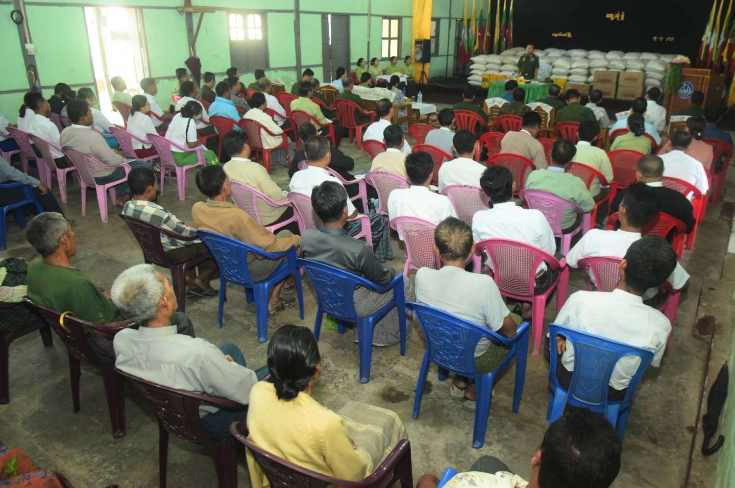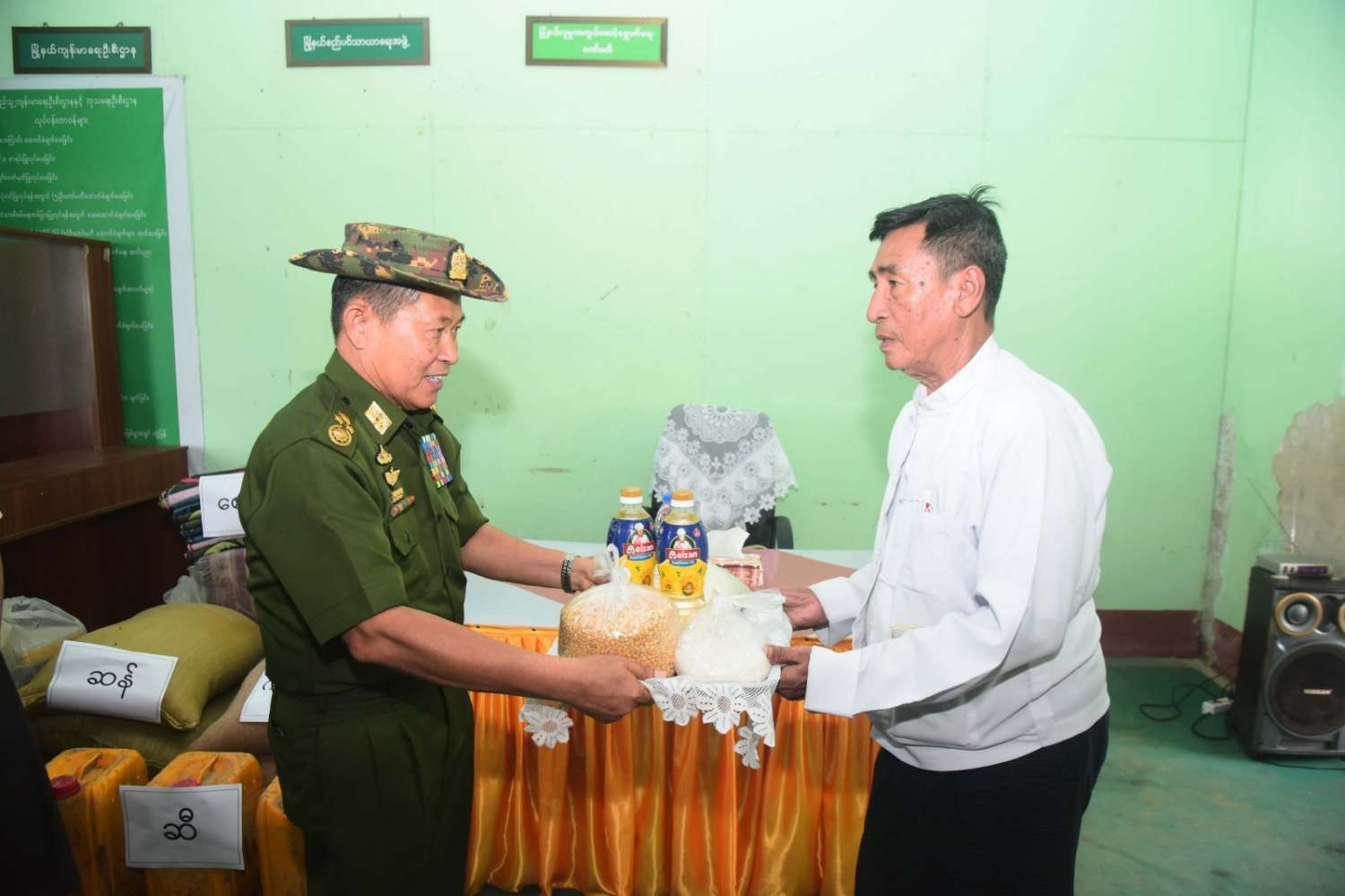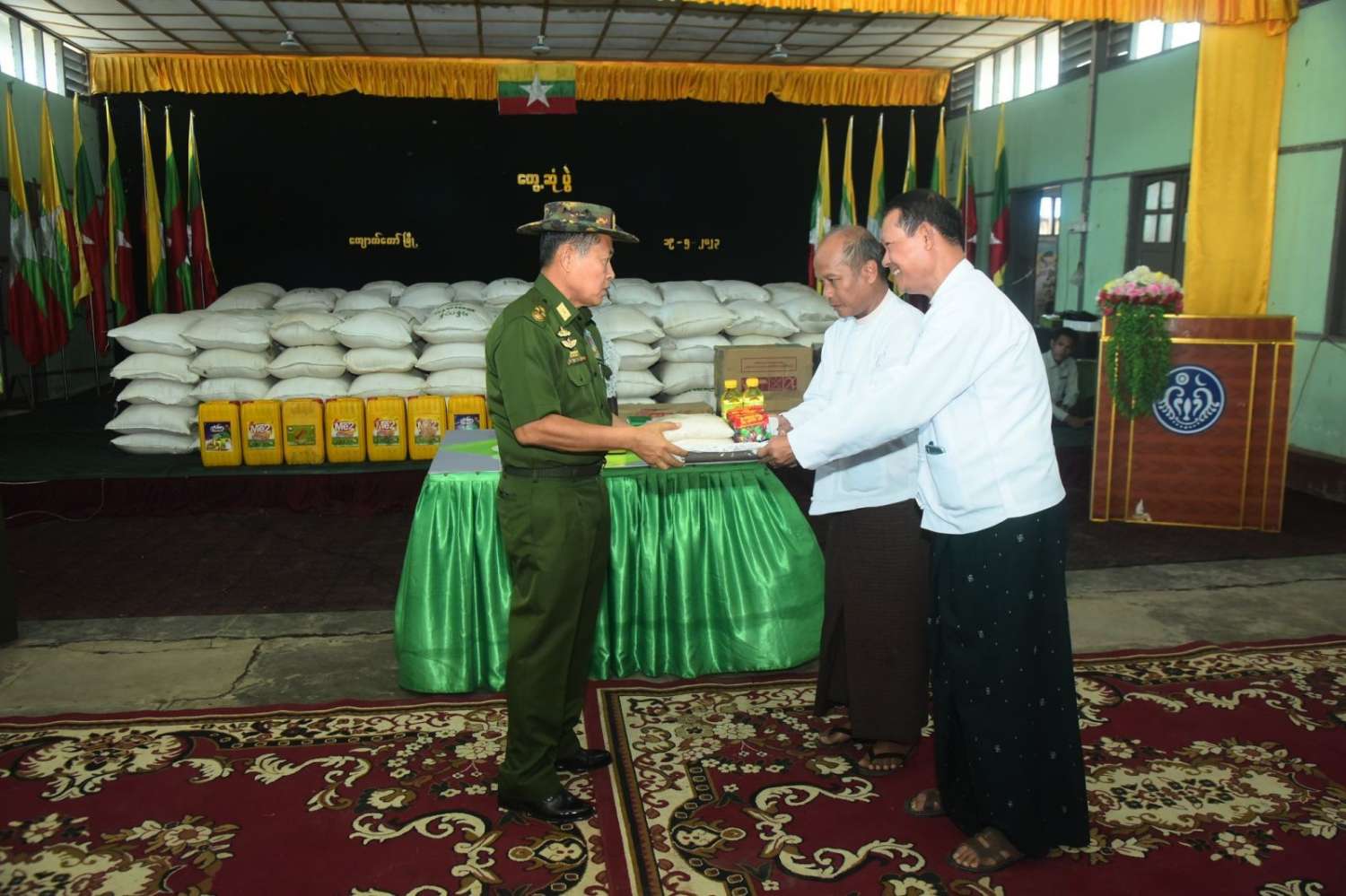 ယင်းနောက် နိုင်ငံတော်စီမံအုပ်ချုပ်ရေးကောင်စီဒုတိယဥက္ကဋ္ဌ ဒုတိယဝန်ကြီးချုပ်နှင့် အဖွဲ့ဝင်များသည် ရသေ့တောင်မြို့အတွင်း ကူညီကယ်ဆယ်ရေးလုပ်ငန်းများ လာရောက်ဆောင်ရွက်ပေးနေသည့် ပဲခူးတိုင်းဒေသကြီးမှ မြန်မာနိုင်ငံမီးသတ်တပ်ဖွဲ့ဝင်များအား ထောက်ပံ့ငွေများပေးအပ်သည်။