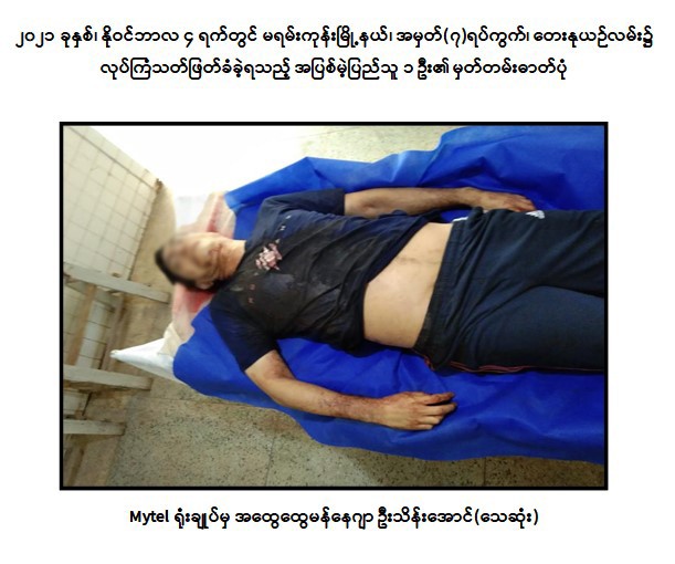 - ၂၀၂၁ ခုနှစ်၊ နိုဝင်ဘာလ ၄ ရက်တွင် ဇင်မျိုးဦး(ခ)Flash(ခ)သားငယ်သည် ဖမ်းဆီးရန်ကျန်တရားခံများဖြစ်သည့် ဥက္ကာလင်းယံ နှင့် Jame တို့၏စေခိုင်းမှုဖြင့် မရမ်းကုန်းမြို့ နယ်၊ အမှတ် (၇) ရပ်ကွက်၊ တေးနုယဉ် လမ်းနေ Mytel ရုံးချုပ်မှ အထွေထွေမန်နေဂျာ ဦးသိန်းအောင် နှင့် ဇနီးဖြစ်သူဒေါ်သိမ့်အောင်သူတို့အား ပစ္စတိုဖြင့်ပစ်ခတ်လုပ်ကြံ သတ်ဖြတ် ခဲ့ကြောင်း။