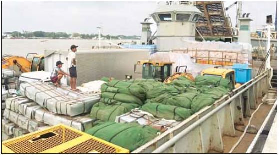အမျိုးသားသဘာဝဘေးအန္တရာယ်ဆိုင်ရာ စီမံခန့်ခွဲမှုကော်မတီ၏ လမ်းညွှန်မှုအရ ပို့ဆောင်ဆက်သွယ်ရေးလုပ်ငန်းကော်မတီ၏ စီစဉ်ကြီးကြပ်မှုဖြင့် ရခိုင်ပြည်နယ်သဘောဝဘေး အန္တရာယ်ကယ်ဆယ်ရေးလုပ်ငန်းများတွင် အသုံးပြုရန်အတွက် ကာကွယ်ရေးဝန်ကြီးဌာန၊ ပို့ဆောင် ရေးနှင့် ဆက်သွယ်ရေးဝန်ကြီးဌာန၊ နယ်စပ်ရေးရာဝန်ကြီးဌာန၊ သယံဇာတနှင့်သဘာဝပတ်ဝန်းကျင် ထိန်းသိမ်းရေးဝန်ကြီးဌာန၊ လျှပ်စစ်စွမ်းအားဝန်ကြီးဌာနများနှင့် မြန်မာ့စီးပွားရေးကော်ပိုရေးရှင်းတို့မှ ကွန်ကရစ်မီးတိုင်များ၊ ထရန်စဖော်မာများ၊ လျှပ်စစ် ကေဘယ်လ်ကြိုးများ၊ သစ်ခွဲသားများ၊ မိုးကာတဲများ၊ မိုးကာများ၊ သွပ်များ၊ အိမ်ရိုက်သံများ၊ ဘိလပ် မြေအိတ်များ၊ မြေတူးစက်နှင့် လုပ်ငန်းသုံးမော်တော်ယာဉ်များ၊ ရေသန့်ဆေးများ၊ ဆန်အိတ်နှင့် ခေါက်ဆွဲခြောက်များ အပါအဝင် ကူညီကယ်ဆယ်ရေးပစ္စည်းများအား ရန်ကုန်မြို့ The Myanmar Terminal (TMT) ဆိပ်ကမ်းတံတား၌ တင်ဆောင်ပြီးနောက် MV.SUN SHINE နှင့် MV.FORTUNE သင်္ဘောနှစ်စင်းသည် ယနေ့မွန်းလွဲပိုင်းတွင် စစ်တွေမြို့သို့ ထွက်ခွာသွားပြီး MV. AQUARIUS သင်္ဘောသည် ကူညီကယ်ဆယ်ရေးပစ္စည်းများ တင်ဆောင်၍ စစ်တွေမြို့သို့ မေ ၁၉ ရက်က ထွက်ခွာသွားခဲ့ကြောင်း သိရသည်။