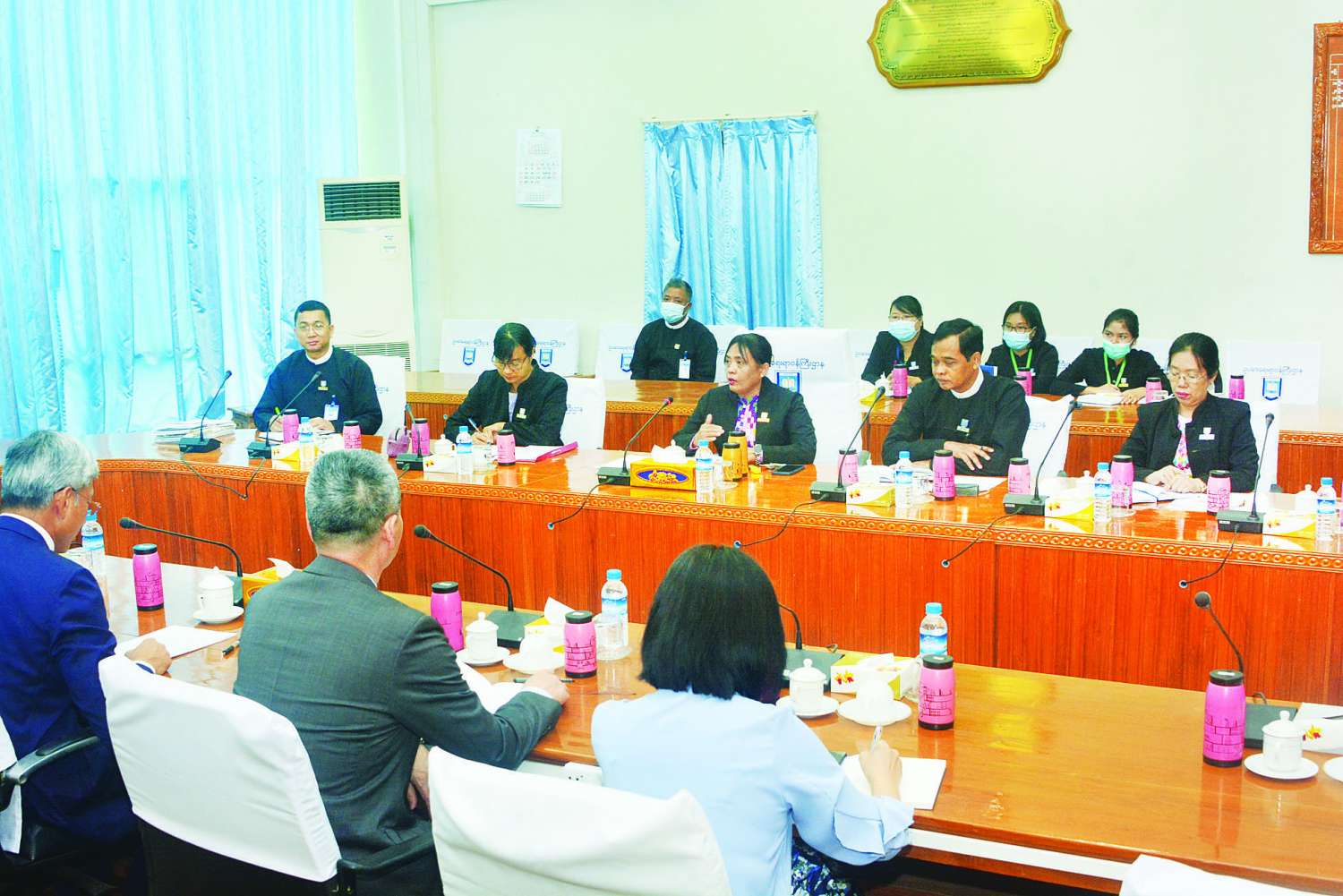 တွေ့ဆုံစဉ် ပြည်ထောင်စုဝန်ကြီးနှင့် ပြည်ထောင်စုရှေ့နေချုပ်က တရုတ်နိုင်ငံဟောင်ကောင်မြို့တွင် ကျင်းပခဲ့သော (၅၉)ကြိမ်မြောက် အာရှ-အာဖရိက ဥပဒေအတိုင်ပင်ခံအဖွဲ့ (Asia-Africa Legal Consultative Orga-nization-AALCO)ကို တရုတ် ပြည်သူ့သမ္မတနိုင်ငံ နိုင်ငံခြားရေးဝန်ကြီး H.E Mr. Wong Yi ၏ ဖိတ်ကြားချက်အရ တက်ရောက်ခဲ့ပါကြောင်း၊ AALCO ညီလာခံတွင် တရုတ်နိုင်ငံမှအဆိုပြုသော theme ဖြစ်သည့် “Upholding International Law for A Community of Shared Future: the Role of Asian and African Countries”အပေါ် ထောက်ခံဆွေးနွေးခဲ့ပါကြောင်း၊ တရုတ်-မြန်မာ နှစ်နိုင်ငံချစ်ကြည်ရင်းနှီးမှုကိုအခြေခံ၍ တရုတ်နိုင်ငံ China- ASEAN Legal Research Center နှင့် ဥပဒေရေးရာဝန်ကြီးဌာနတို့အကြား နားလည်မှုစာချွန်လွှာ (MoU)ကို လက်မှတ်ရေးထိုးရန် ပြင်ဆင်ဆောင်ရွက်လျက်ရှိပါကြောင်း၊ အဆိုပါ MoU အရ Legi-slative Research, Cultivation of Legal Talents နှင့် Legal Consulting Services နယ်ပယ်တွင် ပူးပေါင်းဆောင်ရွက်သွားမည်ဖြစ်ပါကြောင်း၊ capacity building နှင့်စပ်လျဉ်း၍ ဥပဒေရေးရာဝန်ကြီးဌာနမှ ဥပဒေအရာရှိများအား လုပ်ငန်းစွမ်းဆောင်ရည် မြှင့်တင်နိုင်ရန်အတွက် တရုတ်နိုင်ငံသို့ စေလွှတ်၍ ပညာသင်ကြားစေခဲ့ပါကြောင်း၊ ပညာသင်သွား ရောက်သည့် ကျောင်းသားများအား ဥပဒေရေးရာကိစ္စရပ်နှင့် နိုင်ငံတကာအတွေ့အကြုံများရရှိရေး လေ့လာစေလျက်ရှိပါကြောင်း၊ China-ASEAN Prosecutors General Conference အား မြန်မာနိုင်ငံတွင် အိမ်ရှင်အဖြစ် ကျင်းပနိုင်ရေးအတွက် တရုတ်-မြန်မာ နှစ်နိုင်ငံအကြား ဆွေးနွေး လျက်ရှိပါကြောင်း၊ တရုတ်နိုင်ငံအနေဖြင့် မြန်မာနိုင်ငံအား ပံ့ပိုးကူညီပေးမှုများအပေါ် အထူး ကျေးဇူးတင်ရှိပါကြောင်း ဆွေးနွေးပြောကြားသည်။