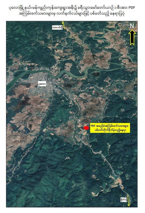 တနင်္သာရီတိုင်းဒေသကြီး ပုလောမြို့နယ်၌ PDF အမည်ခံအကြမ်းဖက်သမားများက အပြစ်မဲ့အရပ်သားပြည်သူများ စီးနင်းလိုက်ပါလာသည့် ခရီးသွားမော်တော်ယာဉ်အား လက်နက်ငယ်များဖြင့် ဆင်ခြင်တုံတရားမဲ့စွာ အကြောင်းမဲ့ပစ်ခတ်တိုက်ခိုက်ခဲ့သဖြင့် အပြစ်မဲ့ခရီးသွားပြည်သူနှစ်ဦး သေဆုံးခဲ့ပြီး သုံးဦးထိခိုက်ဒဏ်ရာများရရှိခဲ့ကြောင်း သိရှိရသည်။