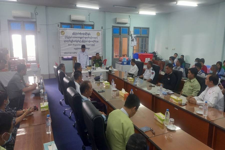 ဆိုင်ကလုန်းမုန်တိုင်း မိုခါဖြတ်သန်းတိုက်ခတ်မှုကြောင့် ရခိုင်ပြည်နယ်သဘာဝ ဘေးအန္တရာယ်ကျရောက်ခဲ့သည့်ဒေသများသို့ သွားရောက်ကူညီဆောင်ရွက်ကြမည့် မွန်ပြည်နယ်ကျန်းမာရေးဦးစီးဌာနမှ (Rapid Response Team)RRT အဖွဲ့ဝင်များအား ယနေ့နံနက်ပိုင်းတွင် ပြည်နယ်ဝန်ကြီးချုပ် ဦးအောင်ကြည်သိန်း၊ အရှေ့တောင်တိုင်း စစ်ဌာနချုပ်တိုင်းမှူးဗိုလ်မှူးချုပ်စိုးမင်းနှင့် တာဝန်ရှိသူများကမော်လမြိုင်မြို့ရှိ ပြည်နယ်ပြည်သူ့ကျန်းမာရေးဦးစီးဌာန အစည်းအဝေးခန်းမ၌ တွေ့ဆုံသည်။