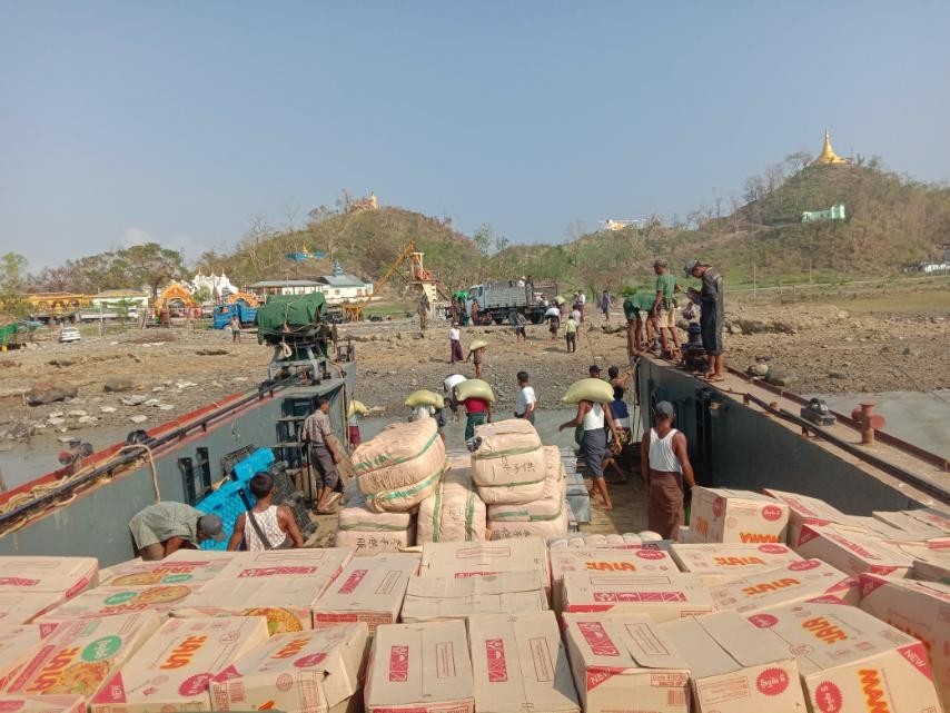 ဆိုင်ကလုန်းမုန်တိုင်း မိုခါ(MOCHA) ဖြတ်သန်းတိုက်ခတ်မှုကြောင့် ထိခိုက်ပျက်စီးဆုံးရှုံးမှုများ ဖြစ်ပေါ်ခဲ့သော ရခိုင်ပြည်နယ်၊ စစ်တွေမြို့ရှိ မုန်တိုင်းဒဏ်သင့် ပြည်သူများအား လိုအပ်သောပစ္စည်းများ ကူညီထောက်ပံ့မှုများ ဆောင်ရွက်ပေးနိုင်ရန် တပ်မတော်(ရေ)မှ ၂၉ မီတာကမ်းထိုးရေ ယာဉ်ပထမအစီးသည် ရေတုန်ကင် ၇၀ လုံး၊ ကျောင်းစိမ်းဝတ်စုံအထုပ်ကြီး ၁၃ ထုပ်၊ ထောက်ပံ့ပစည်းစုံ ၃၆ ထုပ်၊ ရေသန့်ဆေးပြား ၁၉၈ ဖာ၊ ၅၂ ဂါလံ(ဒီဇယ်) ပေပါ ၇၀ လုံး၊ ကယ်ဆယ်ရေး ကော်ပုံးကြီး ၂၄ ပုံး၊ မိုးကာစ ၂၄ ထုပ်၊ မိုးကာတဲငုတ်များ၊ အခြေခံလူသုံးကုန်ပစ္စည်းများ စုစုပေါင်းကုန်တန်ချိန် ၂၄ တန်တို့အား ရေချမ်းပြင်ကမ်းထိုးရပ်၌ တင်ဆောင်၍ ရသေ့တောင်နှင့် ဘူးသီးတောင် ကမ်းထိုးရပ်များသို့လည်းကောင်း၊ ၂၉ မီတာ ကမ်းထိုးရေယာဉ်ဒုတိယအစီးသည် MV.Sunshine ရေယာဉ်မှ သွား တိုက်တံ ၂၃၀၀ ချောင်း၊ သွားတိုက်ဆေး(၂၅)ဂရမ် ၆,၀၀၀ ဘူး၊ သွားတိုက်ဆေး (၇၅)ဂရမ် ၆,၀၀၀ ဘူး၊ ၂၀ လီတာရေသန့်ဘူးခွံ ၅၀ လုံး၊ MV.Forture ရေယာဉ်မှ သွပ် ၅,၀၀၀ ချပ်၊ သွပ်သံ ၂၁၆ ဖာ၊ မိုးကာတဲ ၂၀ ခု၊ ဆန် ၁၅၀ အိတ်၊ ဆီ ၂၂၅ ပိဿာ၊ ဆား ၄၅ ပိဿာ၊ ပဲ ၄၅၀ ပိဿာ၊ ခေါက်ဆွဲခြောက် ၆၀၀ ဖာ၊ ရေသန့် ၆၅၀ ကဒ်၊ အဝတ်အထည် အထုပ်ကြီး ၁၀ ထုပ်နှင့် အိန္ဒိယနိုင်ငံမှထောက်ပံ့သည့် တာပေါ်လင် ၅၂ လိတ် စုစုပေါင်း ကုန်တန်ချိန်(၅၇)တန်တို့အား တင်ဆောင်၍ စစ်တွေမှ ပုဏ္ဏားကျွန်းကမ်းထိုးရပ်သို့လည်းကောင်း ယနေ့နံနက်ပိုင်းတွင် ပို့ဆောင်ပေးသည်။