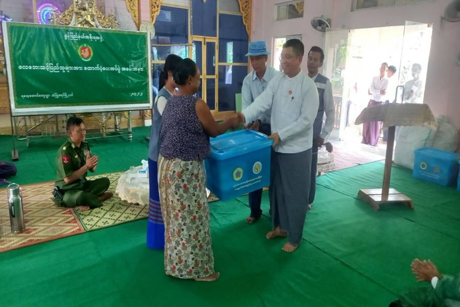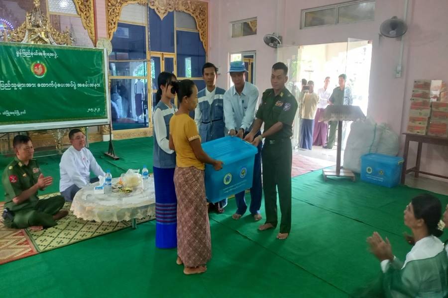 အဆိုပါ လေဘေးသင့်ပြည်သူများအတွက် ထောက်ပံ့ပစ္စည်းများနှင့် ထောက်ပံ့ငွေများ ပေးအပ်ပွဲကို ယနေ့နံနက်ပိုင်းတွင် မွန်ပြည်နယ်၊ သံဖြူဇရပ်မြို့နယ်၊ စက်စဲကျေးရွာ အုပ်စု၊ ရသေ့တောင်ကျေးရွာ၊ ရသေ့တောင်ကျောင်းသစ်ဓမ္မာရုံ၌ ပြုလုပ်ရာ မွန်ပြည်နယ်ဝန်ကြီးချုပ် ဦးအောင်ကြည်သိန်း၊ အရှေ့တောင်တိုင်းစစ်ဌာနချုပ်တိုင်းမှူး ဗိုလ်မှူးချုပ် စိုးမင်း၊ ပြည်နယ်ဝန်ကြီးများ၊ဌာနဆိုင်ရာ တာဝန်ရှိသူများ၊ ဒေသခံပြည်သူများ တက်ရောက်ကြသည်။
