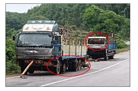 ဖြစ်စဉ်မှာ ကားနှင့်ဆိုင်ကယ်အဟောင်းများတင်ဆောင်၍ ရေးမြို့မှမော်လမြိုင်မြို့သို့ မောင်းနှင်လာသည့် Nissan Diesel အမျိုးအစား ၁၂ ဘီးယာဉ်နှင့် ၆ ဘီးယာဉ် ၂ စီးအား ရေး-မော်လမြိုင်သွားကားလမ်း မိုင်တိုင်အမှတ်၊ ၆၂/၅ နှင့် ၆၂/၆ အကြားနေရာ၌ ယနေ့နံနက် ၇ နာရီခွဲခန့်တွင် KNLA တပ်မဟာ(၆)မှ အကြမ်းဖက်မှုကို လိုလားသူများနှင့် PDF အမည်ခံအကြမ်းဖက်သမားများက လက်နက်ငယ်များဖြင့် ကားဘီးများအား ပစ်ဖောက်၍ ယာဉ်မောင်းခန်းအား မီးရှို့ဖျက်ဆီးခဲ့ကြောင်းနှင့် ယာဉ်မောင်း ၂ ဦးမှာ အသက်ရှင်လွတ်မြောက်ခဲ့ကြောင်း သိရှိရသည်။