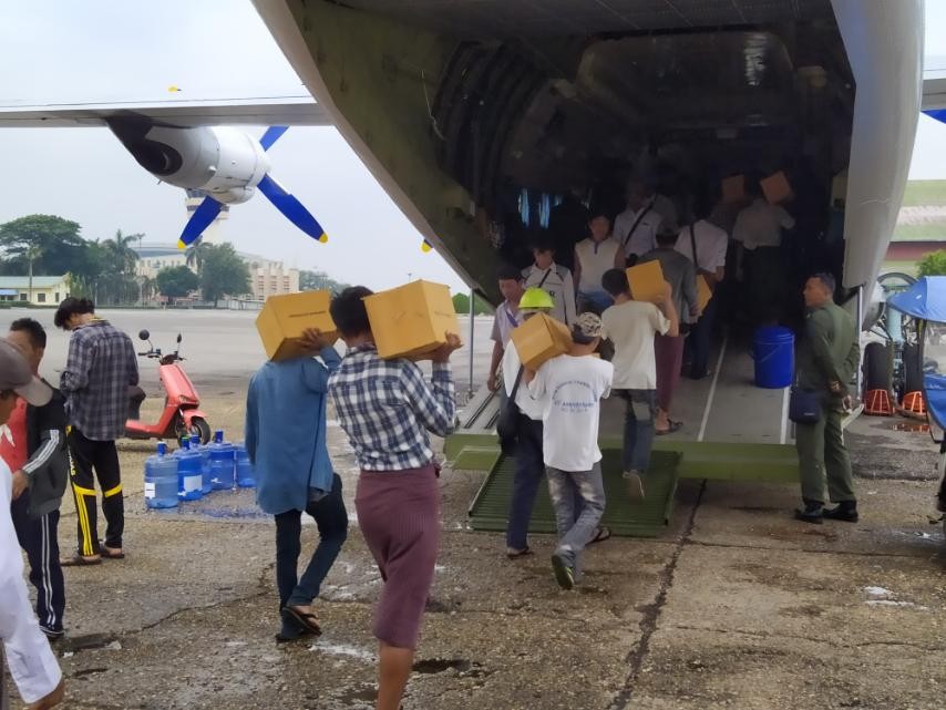 အလားတူ သဘာဝဘေးဒဏ်သင့်ဒေသများတွင် ကူညီကယ်ဆယ်ရေးလုပ်ငန်းများ ဆောင်ရွက်ပေးနိုင်ရေးအတွက် ပြန်လည်ထူထောင်ရေးလုပ်ငန်းများတွင် ကူညီဆောင်ရွက်ပေးကြမည့် တပ်မတော်သားများ၊ မြန်မာနိုင်ငံရဲတပ်ဖွဲ့ဝင်များ၊ သဘာဝဘေးအန္တရာယ်ဆိုင်ရာ ကူညီကယ်ဆယ်ရေးအဖွဲ့များ၊ ဌာနဆိုင်ရာဝန်ထမ်းများနှင့် ဆေးပစ္စည်းများ၊ ဆက်သွယ်ရေးဆက်စပ်ပစ္စည်းများ၊ ကော်ဇောလိပ်များ၊ မိုးကာလိပ်များ၊ မီးစက်များ၊ ပြန်လည်တည်ဆောက်ရေးဆိုင်ရာပစ္စည်းများ၊ အသုံးအဆောင်ပစ္စည်းများနှင့် စားသောက်ဖွယ်ရာများကို တင်ဆောင်၍ ရန်ကုန်မြို့ရှိ မင်္ဂလာဒုံလေဆိပ်မှ စစ်တွေလေဆိပ်သို့ တပ်မတော်လေယာဉ်ဖြင့် ၂ ကြိမ် ပို့ဆောင်ပေးခဲ့ကြောင်း သိရသည်။
