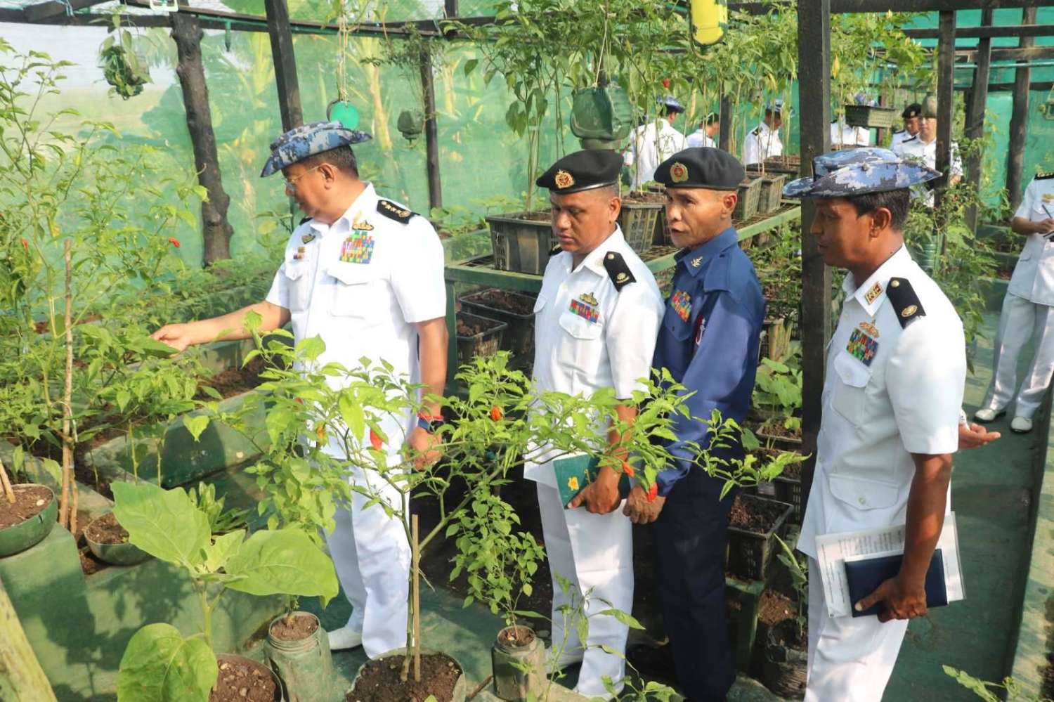ဆက်လက်၍ နယ်မြေခံရေတပ်စခန်းဌာနချုပ်ကွပ်ကဲမှုအောက်တပ်သို့ သွားရောက်ပြီး ငါးခူမွေးမြူရေးဆောင်ရွက်ထားရှိမှုအား ကြည့်ရှုခြင်း၊ ဥစားကြက်ခြံ၊ DYL ဝက်မွေးမြူရေးခြံ၊ ဒေသနွားမွေးမြူရေးခြံနှင့် ဒေသဆိတ်မွေးမြူရေးခြံများအား ကြည့်ရှုစစ်ဆေးခြင်းတို့ ဆောင်ရွက်ခဲ့ပါသည်။ ၎င်းနောက် ပင်လယ်ကမ်းခြေတစ်လျှောက် အုန်းပင်နှင့်ဒီရေရောက်တောများ စိုက်ပျိုးဖြစ်ထွန်းအောင်မြင်မှုအား ကြည့်ရှုစစ်ဆေးခဲ့ပြီး ယခုနှစ်မိုးရာသီတွင် ကြိုတင်စုဆောင်းထားသည့် အုန်းပင်၊ လမုပင်များနှင့် အရိပ်ရလေကာပင်များ ထပ်မံစိုက်ပျိုးနိုင်ရေးမှာကြား၍ နယ်မြေခံရေတပ်စခန်းဌာနချုပ်ရှိ အရာရှိ၊ စစ်သည်၊ မိသားစုဝင်များအား တွေ့ဆုံအားပေးစကားပြောကြားကာ ထောက်ပံ့ပစ္စည်းများပေးအပ်ပြီး လိုအပ်သည်များ ဖြည့်ဆည်းဆောင်ရွက်ပေးခဲ့သည်။