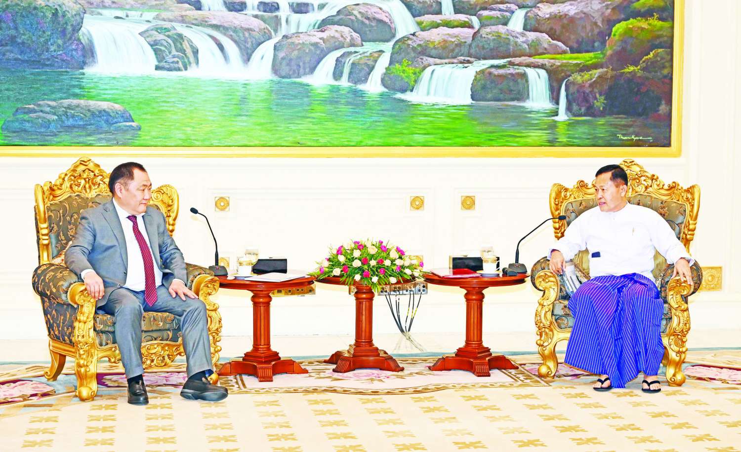 နိုင်ငံတော်စီမံအုပ်ချုပ်ရေးကောင်စီဒုတိယဥက္ကဋ္ဌ ဒုတိယဝန်ကြီးချုပ် ဒုတိယဗိုလ်ချုပ်မှူးကြီး စိုးဝင်းသည် ရုရှားဖက်ဒရေးရှင်းနိုင်ငံ ဒူးမားလွှတ်တော် ဒုတိယဥက္ကဋ္ဌ H.E. Mr. Sholban Kara-Ool ဦးဆောင်သည့် ကိုယ်စားလှယ်အဖွဲ့အား ယနေ့မွန်းလွဲ ၁ နာရီတွင် နေပြည်တော်ရှိ နိုင်ငံတော်စီမံအုပ်ချုပ်ရေးကောင်စီဥက္ကဋ္ဌရုံး သံတမန်ဆောင်ဧည့်ခန်းမ၌ လက်ခံတွေ့ဆုံသည်။