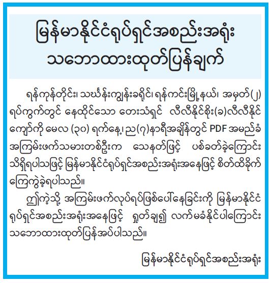 မြန်မာနိုင်ငံရုပ်ရှင်အစည်းအရုံး သဘောထားထုတ်ပြန်ချက်