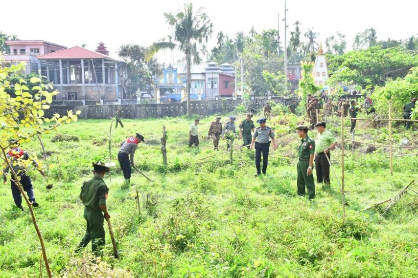 ထိုသို့ ပြန်လည်ထူထောင်ရေးလုပ်ငန်းများ ဆောင်ရွက်ရန်အတွက် ခန့်အပ် တာဝန်ပေးအပ်ထားရှိရာ ယနေ့တွင် ကျောက်ဖြူမြို့သို့ရောက်ရှိနေသည့် ကာကွယ်ရေး ဦးစီးချုပ်ရုံး(ကြည်း) မှ ဒုတိယဗိုလ်ချုပ်ကြီး လူအေးသည် တာဝန်ရှိသူများနှင့်အတူ ကျောက်ဖြူမြို့ရှိ အမှတ်(၁)အခြေခံပညာ အထက်တန်း ကျောင်းသို့ သွားရောက်၍ ကျောင်းသန့် ရှင်းသာယာလှပရေး ဆောင်ရွက်နေ မှုများကို ကြည့်ရှုစစ်ဆေး ခဲ့သည်။