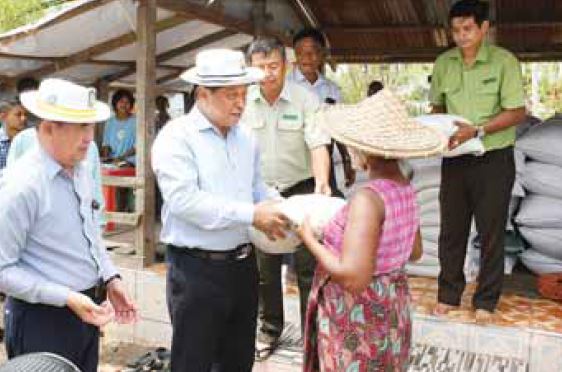 ယင်းနောက် စစ်တွေမြို့ရှိ မုန်တိုင်းဒဏ်သင့် ပြည်သူလူထု အတွက် ဒံပေါက်ထုပ်များ ဝေငှရန် ဆောင်ရွက်နေသည့် ချက်ပြုတ် ရေးအဖွဲ့များအား သွားရောက် တွေ့ဆုံ၍ မြန်မာ့စီးပွားရေး ကော်ပို ရေးရှင်းနှင့် မြန်မာ့စီးပွားရေး ဦးပိုင်အများနှင့် သက်ဆိုင်သော ကုမ္ပဏီလီမိတက်တို့မှ ထုတ်လုပ် သည့် လူသုံးကုန်နှင့် စားသောက် ဖွယ်ရာများ ထောက်ပံ့ပေးအပ်သည်။