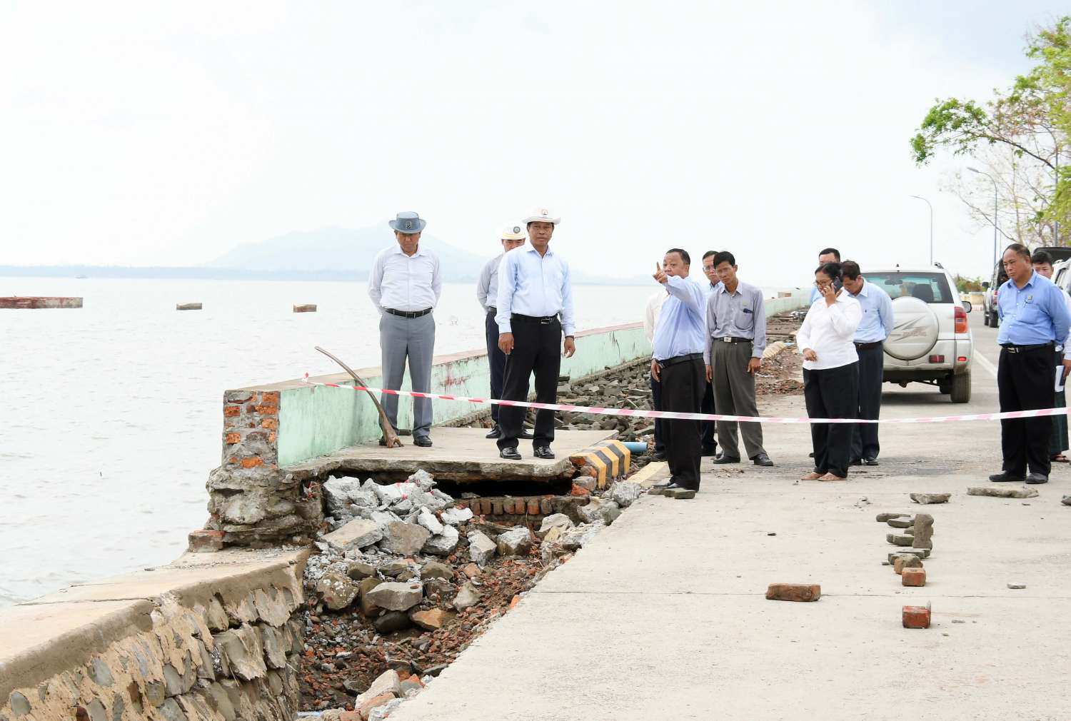 ထို့နောက် ဗိုလ်ချုပ်ကြီး တင်အောင်စန်းနှင့် အဖွဲ့သည် စစ်တွေမြို့ ကမ်းနားလမ်းသို့ ရောက်ရှိပြီး ကွန်ကရစ်လမ်း၊ ပလက်ဖောင်းနှင့် ကျောက်စီ မြေထိန်းနံရံများ ပျက်စီးနေမှုအား ဆောက်လုပ် ရေးဝန်ကြီးဌာန စစ်တွေခရိုင်လမ်းဦးစီးဌာနက ပြန်လည်ပြုပြင်ရန် ဆောင်ရွက်နေမှုအခြေ အနေကို ကြည့်ရှု စစ်ဆေးသည်။