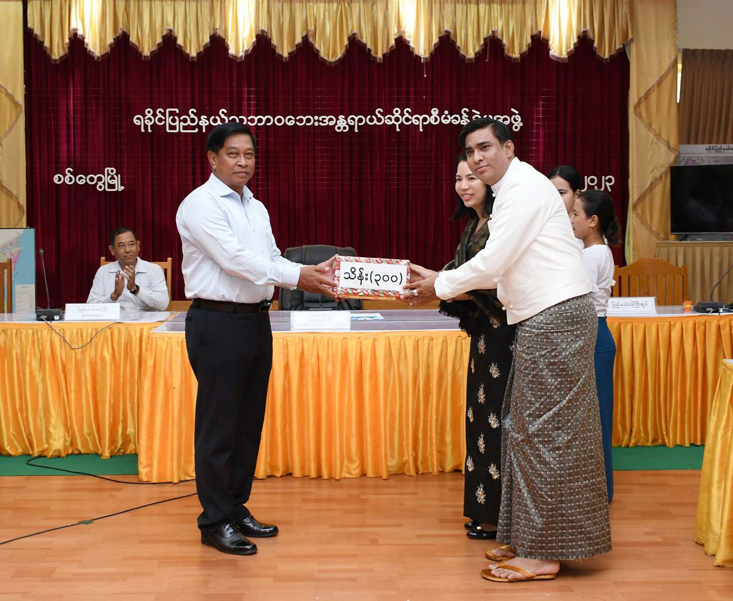 ထို့နောက် ဗိုလ်ချုပ်ကြီး တင်အောင်စန်းသည် ရခိုင် ပြည်နယ်အစိုးရအဖွဲ့ရုံး၌ ကျင်းပ သည့် ရခိုင်ပြည်နယ် မုန်တိုင်းဒဏ် သင့်ဒေသများ ပြန်လည်ထူထောင်ရေး အလှူငွေပေးအပ်လှူဒါန်းပွဲသို့ တက်ရောက်၍ အလှူရှင် Myo Naing- Nine Group Co.,Ltd (Yangon)မှ ပေးအပ်လှူဒါန်း သည့် အလှူငွေကျပ်သိန်း ၃၀၀ ကို လက်ခံရယူပြီး ဂုဏ်ပြုမှတ်တမ်းလွှာ ပြန်လည်ပေးအပ်ကာ ပြည်နယ်ဝန်ကြီးချုပ်က ကျေးဇူး တင်စကား ပြောကြားသည်။