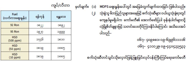 ရန်ကုန်မြို့နှင့်မန္တလေးမြို့အတွက် ရည်ညွှန်းလက်ကားဈေးနှုန်းများနှင့် ပြည်ထောင်စုနယ်မြေ နေပြည်တော်၊ တိုင်းဒေသကြီး/ပြည်နယ် မြို့တော်များအတွက် ရည်ညွှန်းလက်လီဈေးနှုန်းများ 06/04/2023