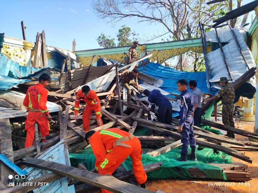 သဘာဝဘေးအန္တရာယ်ကျရောက်ခဲ့ရသည့်ဒေသများတွင် လိုအပ်သည့် ကူညီကယ်ဆယ်ရေးနှင့် ပြန်လည်ထူထောင်ရေးလုပ်ငန်းများ ကူညီဆောင်ရွက်ပေးနိုင်ရေးအတွက် တပ်မတော်မှ ကြိုတင်စုဖွဲ့စေလွှတ်ထားသည့် ကူညီကယ်ဆယ်ရေးအဖွဲ့များသည် နယ်မြေခံလုံခြုံရေးတပ်ဖွဲ့ဝင်များ၊ လူမှုကယ်ဆယ်ရေးအဖွဲ့များနှင့် ပူးပေါင်း၍ သက်ဆိုင်ရာဒေသများတွင် အင်တိုက်အားတိုက် ကူညီဆောင်ရွက်ပေးလျက်ရှိသည်။