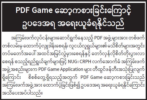 PDF Game ဆော့ကစားခြင်းကြောင့် ဥပဒေအရ အရေးယူခံရနိုင်သည်