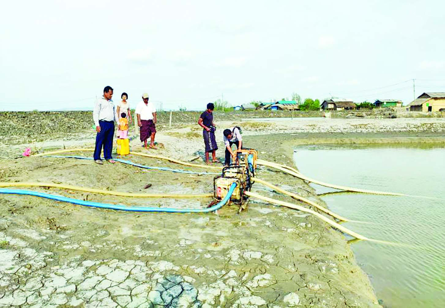 မိုခါမုန်တိုင်း တိုက်ခတ်မှုကြောင့် ရခိုင်ပြည်နယ်အတွင်းရှိ သောက်သုံးရေကန်များ၌ ရေငန်ဝင်ရောက်မှုဖြစ်ပေါ်ခဲ့သဖြင့်သမဝါယမနှင့် ကျေးလက်ဖွံ့ဖြိုးရေး ဝန်ကြီးဌာနအနေဖြင့် အဆိုပါ ရေကန်များမှရေစုပ်ထုတ်၍ ပြည်သူများသန့်ရှင်းသောသောက်သုံးရေရရှိရေး ဆောင်ရွက်ပေးလျက်ရှိရာ စစ်တွေမြို့နယ်၊ ပုဏ္ဏားကျွန်းမြို့နယ်၊ ပေါက်တောမြို့နယ်၊ ရသေ့တောင်မြို့နယ်၊ မြောက်ဦးမြို့နယ်၊ ကျောက်တော်မြို့နယ်၊ မင်းပြားမြို့နယ်နှင့် မြေပုံမြို့နယ်တို့ရှိ ကျေးရွာ ၁၁၆ ရွာမှ ရေကန်စုစုပေါင်း ၂၂၂ ကန်ကို ရေငန် စုပ်ထုတ်ခြင်းလုပ်ငန်း ဆောင်ရွက်လျက်ရှိပြီး လက်ရှိအချိန်အထိဆောင်ရွက်ပြီးရေကန် ၁၄၂ ကန်၊ ဆောင်ရွက်ဆဲရေကန် ၁၉ ကန်နှင့် ဆောင်ရွက်ရန်ကျန်ရှိသည့် ရေကန် ၆၁ ကန်တို့ဖြစ်ကြောင်း သိရှိရသည်။