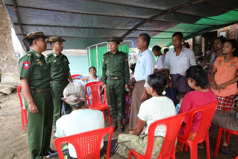 ယင်းသို့ ဆောင်ရွက်ပေးနေမှုများကို ကာကွယ်ရေးဦးစီးချုပ်ရုံး(ကြည်း)မှ ဒုတိယဗိုလ်ချုပ်ကြီးဖုန်းမြတ်၊ အနောက်ပိုင်းတိုင်းစစ်ဌာနချုပ်တိုင်းမှူး ဗိုလ်ချုပ်ထင်လတ်ဦးနှင့် အဖွဲ့ဝင်များက သွားရောက် ကြည့်ရှုအားပေးပြီး လိုအပ်သည်များ ညှိနှိုင်းဆောင်ရွက်ပေးခဲ့ကြောင်း သတင်းရရှိသည်။