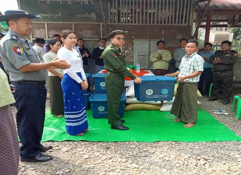 ထို့ပြင် ဇွန် ၆ ရက်တွင် ချင်းပြည်နယ်၊ ပလက်ဝမြို့သို့ ရောက်ရှိနေသော ဗိုလ်မှူးချုပ်နေဝင်းအောင်သည် တာဝန်ရှိသူများနှင့်အတူ ပလက်ဝမြို့၊ ရွာမရပ်ကွက်ရှိ အုပ်ချုပ်ရေးမှူးရုံး၌ လေဘေးသင့်ကျေးရွာ(၄၄)ရွာမှ ဒေသခံပြည်သူများ အား ဆန်၊ ဆီ၊ ဆား၊ ပဲ စသည့် စားသောက်ကုန်ပစ္စည်းများနှင့် ဘေးအန္တရာယ်စီမံခန့်ခွဲမှုဦးစီးဌာနမှပေးအပ်သော Family Kit ၁၄၄ ပုံးတို့အား လေဘေးသင့် ပြည်သူများလက်ဝယ်အရောက် ထောက်ပံ့ပေးအပ်ခဲ့ကြောင်း သတင်းရရှိသည်။