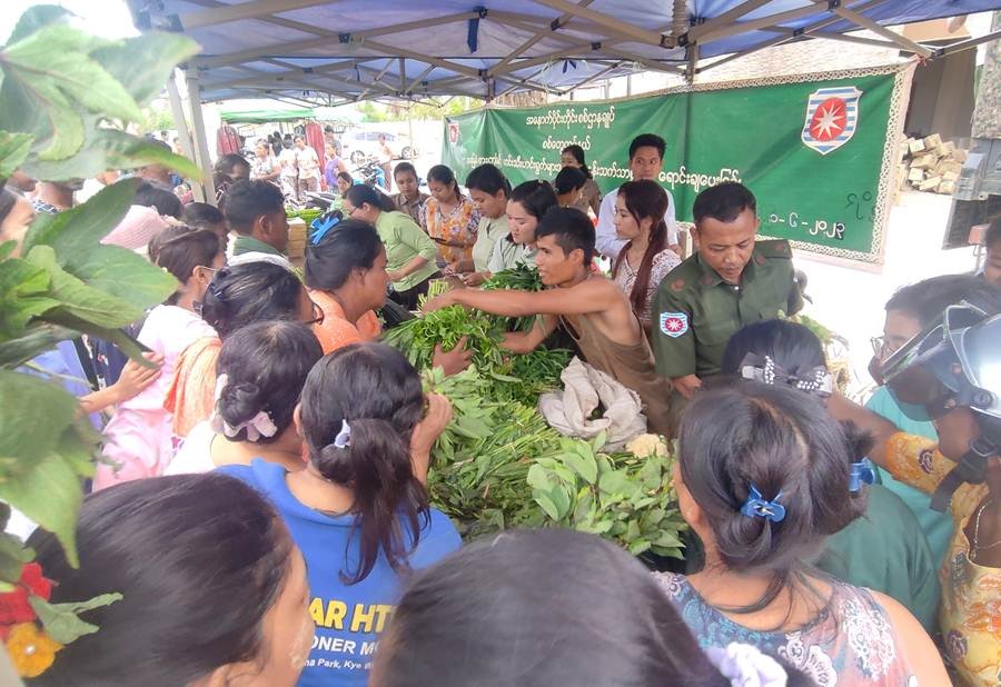 ဆိုင်ကလုန်းမုန်တိုင်း(မိုခါ)တိုက်ခတ်မှုကြောင့် ပျက်စီးဆုံးရှုံးမှုများ ဖြစ်ပေါ်ခဲ့သည့် စစ်တွေမြို့ရှိ မုန်တိုင်းဒဏ်သင့်ဒေသခံပြည်သူများနှင့် ဌာနဆိုင်ရာဝန်ထမ်းများ၏ စားသောက်ရေးအဆင်ပြေစေရန်နှင့် မိမိတို့အလိုရှိရာ စားသောက်ကုန်ပစ္စည်းများကို ဈေးနှုန်းသက်သာစွာဖြင့် ဝယ်ယူစားသောက်နိုင်ရေးအတွက် အနောက်ပိုင်းတိုင်းစစ်ဌာနချုပ်၊ နယ်မြေခံတပ်မတော်သားများနှင့် တာဝန်ရှိသူများက ယနေ့တွင်လည်း စစ်တွေမြို့၊ ဦးဥတ္တမ ပန်းခြံ၌ ဆန်၊ ဆီ၊ ဆား၊ အသား/ ငါး ကြက်ဥ၊ ဘဲဥ၊ နို့ထွက်ပစ္စည်းများ၊ ဟင်းသီးဟင်းရွက်များ၊ ကြက်သွန်နီ၊ ကြက်သွန်ဖြူနှင့် တပ်မတော်စက်ရုံများနှင့် မြန်မာ့စီးပွားရေးကော်ပိုရေးရှင်းတို့မှ ထုတ်လုပ်သည့် ခေါက်ဆွဲခြောက်၊ ဘီစကွတ်နှင့် စည်သွပ်ဘူးများဖြစ်သည့် အမဲသားဘူး၊ မျှစ်၊ စားတော်ပဲဘူး၊ ကြက်သားအာလူးဘူး၊ ငါးတန်အချိုပေါင်းဘူး၊ ငါးသလောက်ဘူး၊ ငပိကြော်ဘူး၊ ပဲထောပတ်ဘူး၊ ပဲခရမ်းဘူး၊ သရက်သီးသနပ်ဘူး စသည့်စားသောက်ကုန်များ၊ ပုဂ္ဂလိကလုပ်ငန်းရှင်များ၏ စားကုန်ပစ္စည်းများ၊ လျှပ်စစ် ပစ္စည်းများနှင့် အိမ်ဆောက်ပစ္စည်းများကို ပြင်ပပေါက်ဈေးထက် သက်သာသောဈေးနှုန်းများဖြင့် ဆက်လက်ရောင်းချပေးခဲ့ရာ ဒေသခံပြည်သူများနှင့် ဌာနဆိုင်ရာဝန်ထမ်းမိသားစုများက တစ်ခဲနက် ဝယ်ယူအားပေးကြသည်။