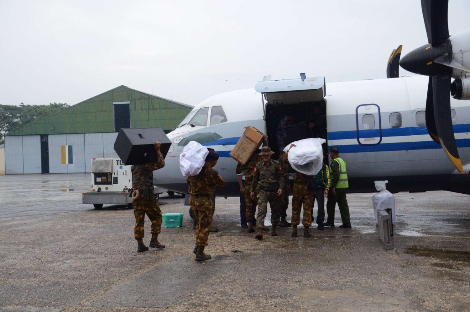 သဘာဝဘေးဒဏ်သင့်ဒေသများရှိ ပြည်သူများအတွက် ကယ်ဆယ်ရေးပစ္စည်းများကို တပ်မတော်(လေ)မှ လေယာဉ်/ရဟတ်ယာဉ်များဖြင့် အချိန်နှင့်တစ်ပြေးညီ ပို့ဆောင်ပေးလျက်ရှိရာ ယနေ့အချိန်ထိ ထောက်ပံ့ရေးပစ္စည်း ၄၇၆.၄ တန်၊ ပြန်လည်ထူထောင်ရေးလုပ်ငန်းများတွင် ကူညီဆောင်ရွက်ပေးကြမည့် တပ်မတော်သားများနှင့် ဌာနဆိုင်ရာ ဝန်ထမ်း ၃၁၉၁ ဦးတို့အား ပို့ဆောင်ပေးနိုင်ခဲ့ကြောင်းနှင့် လေဆိပ်များသို့ရောက်ရှိသည့် ကယ်ဆယ်ရေးပစ္စည်းများအား မုန်တိုင်းဒဏ်သင့်ဒေသများသို့ ရဟတ်ယာဉ်များဖြင့် ဆက်လက်ပေးပို့ဖြန့်ဖြူးလျက်ရှိကြောင်းနှင့် အဆိုပါတပ်မတော်လေယာဉ်/ရဟတ်ယာဉ်များဖြင့် ပို့ဆောင်ပေးလျက်ရှိသော ပစ္စည်းများကို တာဝန်ရှိသူများက လက်ခံရယူပေးကြကြောင်း သတင်းရရှိသည်။