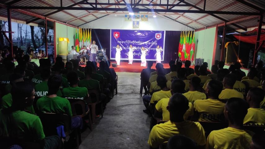 ရခိုင်ပြည်နယ်အတွင်းရှိ မိုခါမုန်တိုင်းဒဏ်သင့်ဒေသများတွင် ပြန်လည်ထူထောင်ရေးလုပ်ငန်းများ ဆောင်ရွက်လျက်ရှိသည့် အနောက်ပိုင်းတိုင်းစစ်ဌာနချုပ် နယ်မြေခံတပ်မတော်သားများ၊ မြန်မာနိုင်ငံရဲတပ်ဖွဲ့ဝင်များ၊ မီးသတ်တပ်ဖွဲ့ဝင်များနှင့် မိသားစုဝင်များအား စိတ်ရွှင်လန်းချမ်းမြေ့စေရန်နှင့် ပင်ပန်းနွမ်းနယ်မှုများပြေပျောက်စေရန်အတွက် ယနေ့ညနေပိုင်းတွင် အနောက်ပိုင်းတိုင်းစစ်ဌာနချုပ် စစ်တွေတပ်နယ်ရှိ နယ်မြေခံတပ်ရင်းခန်းမ၌ ကာကွယ်ရေးဦးစီးချုပ်ရုံး (ကြည်း) ပြည်သူ့ဆက်ဆံရေးနှင့် စိတ်ဓါတ်စစ်ဆင်ရေးညွှန်ကြားရေးမှူးရုံး ကွပ်ကဲမှုအောက်ရှိ နယ်လှည့်ပြည်သူ့ဆက်ဆံရေးတပ်ခွဲမှ စစ်သည်/ စစ်သမီးများက အဆို/ အကများဖြင့် ဖျော်ဖြေတင်ဆက်ကြသည်။