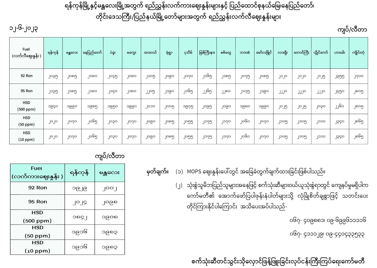 ရန်ကုန်မြို့နှင့် မန္တလေးမြို့အတွက် ရည်ညွှန်းလက်ကားဈေးနှုန်းများနှင့် ပြည်ထောင်စုနယ်မြေ နေပြည်တော်၊ တိုင်းဒေသကြီး/ ပြည်နယ် မြို့တော်များအတွက် ရည်ညွှန်းလက်လီဈေးနှုန်းများ 06/12/2023