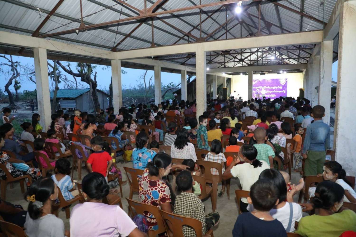 ရခိုင်ပြည်နယ်အတွင်းရှိ မိုခါမုန်တိုင်းဒဏ်သင့်ဒေသများတွင် ပြန်လည်ထူထောင်ရေးလုပ်ငန်းများ ဆောင်ရွက်လျက်ရှိသည့် အနောက်ပိုင်းတိုင်းစစ်ဌာနချုပ် နယ်မြေခံတပ်မတော်သားများ၊ မြန်မာနိုင်ငံရဲတပ်ဖွဲ့ဝင်များ၊ မီးသတ်တပ်ဖွဲ့ဝင်များနှင့် မိသားစုဝင်များအား စိတ်ရွှင်လန်းချမ်းမြေ့စေရန်နှင့် ပင်ပန်းနွမ်းနယ်မှုများ ပြေပျောက်စေရန်အတွက် ယနေ့ညနေပိုင်းတွင် အနောက်ပိုင်းတိုင်းစစ်ဌာနချုပ် စစ်တွေတပ်နယ်ရှိ နယ်မြေခံတပ်ရင်းခန်းမ၌ ကာကွယ်ရေးဦးစီးချုပ်ရုံး (ကြည်း) ပြည်သူ့ဆက်ဆံရေးနှင့်စိတ်ဓါတ်စစ်ဆင်ရေး ညွှန်ကြားရေးမှူးရုံး ကွပ်ကဲမှုအောက်ရှိ နယ်လှည့်ပြည်သူ့ဆက်ဆံရေးတပ်ခွဲမှ စစ်သည်/ စစ်သမီးများက အဆို/ အက များဖြင့် ဖျော်ဖြေတင်ဆက်ကြသည်။