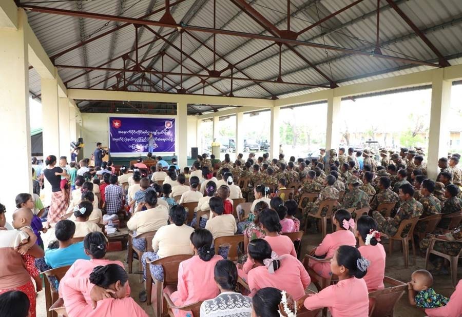 ရခိုင်ပြည်နယ်အတွင်းရှိ မိုခါမုန်တိုင်းဒဏ်သင့်ဒေသများတွင် ပြန်လည်ထူထောင်ရေးလုပ်ငန်းများ ဆောင်ရွက်လျက်ရှိသည့် အနောက်ပိုင်းတိုင်းစစ်ဌာနချုပ် နယ်မြေခံတပ်မတော်သားများ၊ မြန်မာနိုင်ငံရဲတပ်ဖွဲ့ဝင်များ၊ မီးသတ်တပ်ဖွဲ့ဝင်များနှင့် မိသားစုဝင်များအား စိတ်ရွှင်လန်းချမ်းမြေ့စေရန်နှင့် ပင်ပန်းနွမ်းနယ်မှုများ ပြေပျောက်စေရန်အတွက် ယနေ့နေ့လယ်ပိုင်းတွင် အနောက်ပိုင်းတိုင်းစစ်ဌာနချုပ် ရသေ့တောင်တပ်နယ်ရှိ နယ်မြေခံတပ်ရင်းခန်းမ၌ ကာကွယ်ရေးဦးစီးချုပ်ရုံး(ကြည်း) ပြည်သူ့ဆက်ဆံရေးနှင့်စိတ်ဓါတ်စစ်ဆင်ရေးညွှန်ကြားရေးမှူးရုံး ကွပ်ကဲမှုအောက်ရှိ နယ်လှည့်ပြည်သူ့ဆက်ဆံရေးတပ်ခွဲမှ စစ်သည်/ စစ်သမီးများက အဆို/ အကများဖြင့် ဖျော်ဖြေ တင်ဆက်ကြသည်။