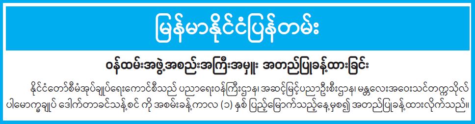 ဝန်ကြီးဌာန ကြေညာချက်များ