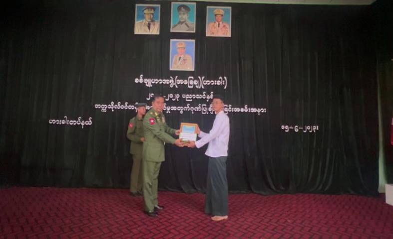 ထိုသို့ ပြန်လည်ထူထောင်ရေးလုပ်ငန်းများ ဆောင်ရွက်ရန်အတွက် ခန့်အပ်တာဝန်ပေးအပ်ထားရှိရာ ယနေ့တွင် ချင်းပြည်နယ်၊ ဟားခါးမြို့သို့ရောက်ရှိနေသည့် ကာကွယ်ရေးဦးစီးချုပ်ရုံး(ကြည်း)မှ ဒုတိယဗိုလ်ချုပ်ကြီး မင်းနိုင်နှင့် အဖွဲ့ဝင်များသည် နယ်မြေခံတပ်နယ်၌ ပြုလုပ်သော ၂၀၂၂-၂၀၂၃ ပညာသင်နှစ် တက္ကသိုလ်ဝင်တန်း အောင်မြင်သည့် ကျောင်းသား၊ ကျောင်းသူများအား ဂုဏ်ပြုချီးမြှင့်ပွဲသို့ တက်ရောက်ခဲ့သည်။