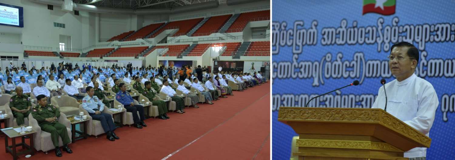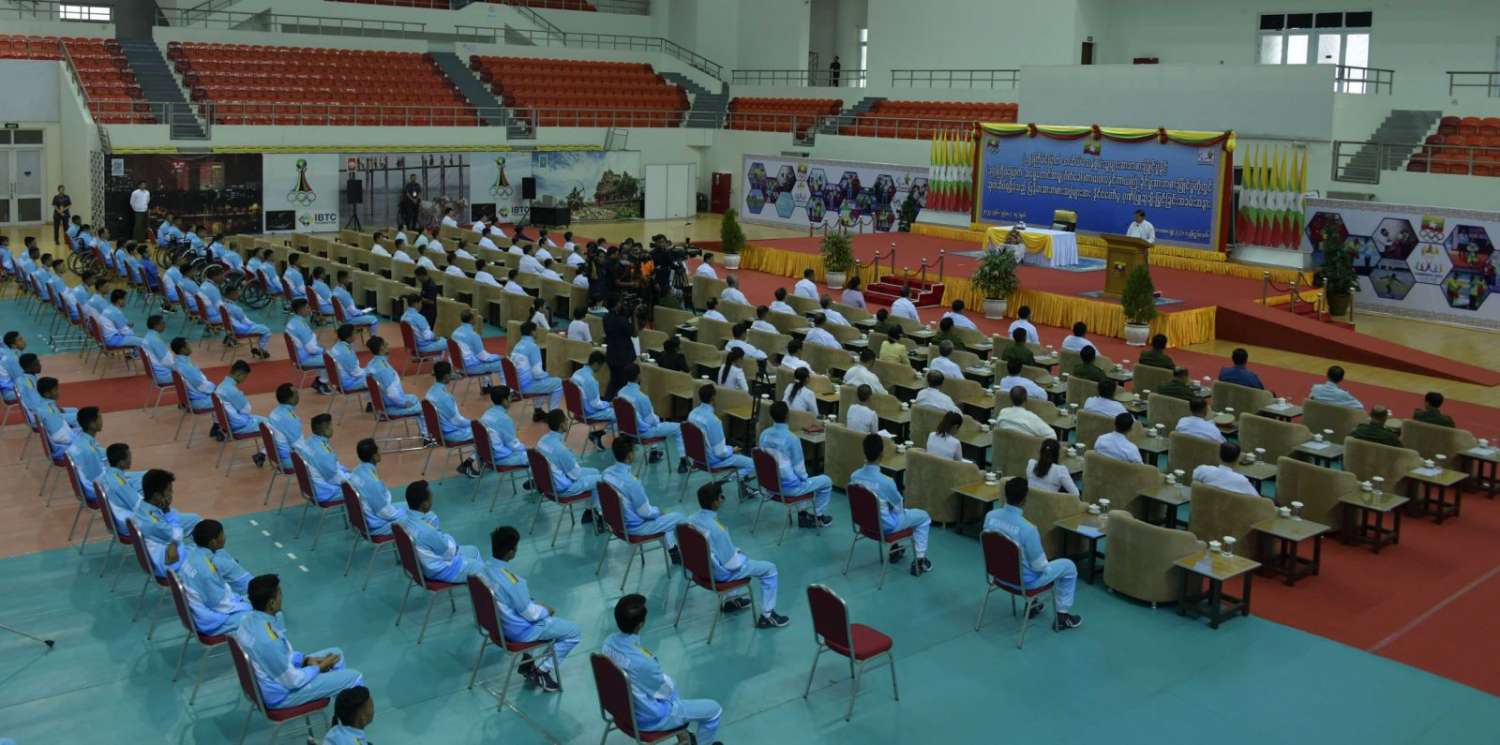 ကမ္ဘောဒီးယားနိုင်ငံ၌ ကျင်းပသည့် (၁၂)ကြိမ်မြောက် အာဆီယံမသန်စွမ်းသူများ အားကစားပြိုင်ပွဲနှင့် အင်ဒိုနီးရှားနိုင်ငံ၌ကျင်းပသည့် (၁၇)ကြိမ်မြောက် အရှေ့တောင် အာရှ(ဖိတ်ခေါ်) ကာယဗလနှင့် ကာယကြံ့ခိုင်မှု အားကစားပြိုင်ပွဲတို့တွင် ဆုတံဆိပ်ရရှိခဲ့သည့် မြန်မာအားကစားအဖွဲ့များအား နိုင်ငံတော်မှဂုဏ်ပြုဆု ချီးမြှင့်ခြင်းအခမ်းအနားကို ယနေ့မွန်းလွဲပိုင်းတွင် နေပြည်တော်ရှိ ဝဏ္ဏသိဒ္ဓိ အားကစားရုံ(B)၌ကျင်းပရာ နိုင်ငံတော်စီမံအုပ်ချုပ်ရေးကောင်စီဥက္ကဋ္ဌ နိုင်ငံတော်ဝန်ကြီးချုပ် ဗိုလ်ချုပ်မှူးကြီး မင်းအောင်လှိုင် တက်ရောက်အမှာစကားပြောကြားပြီး ဂုဏ်ပြုဆုငွေများ ပေးအပ် ချီးမြှင့်သည်။