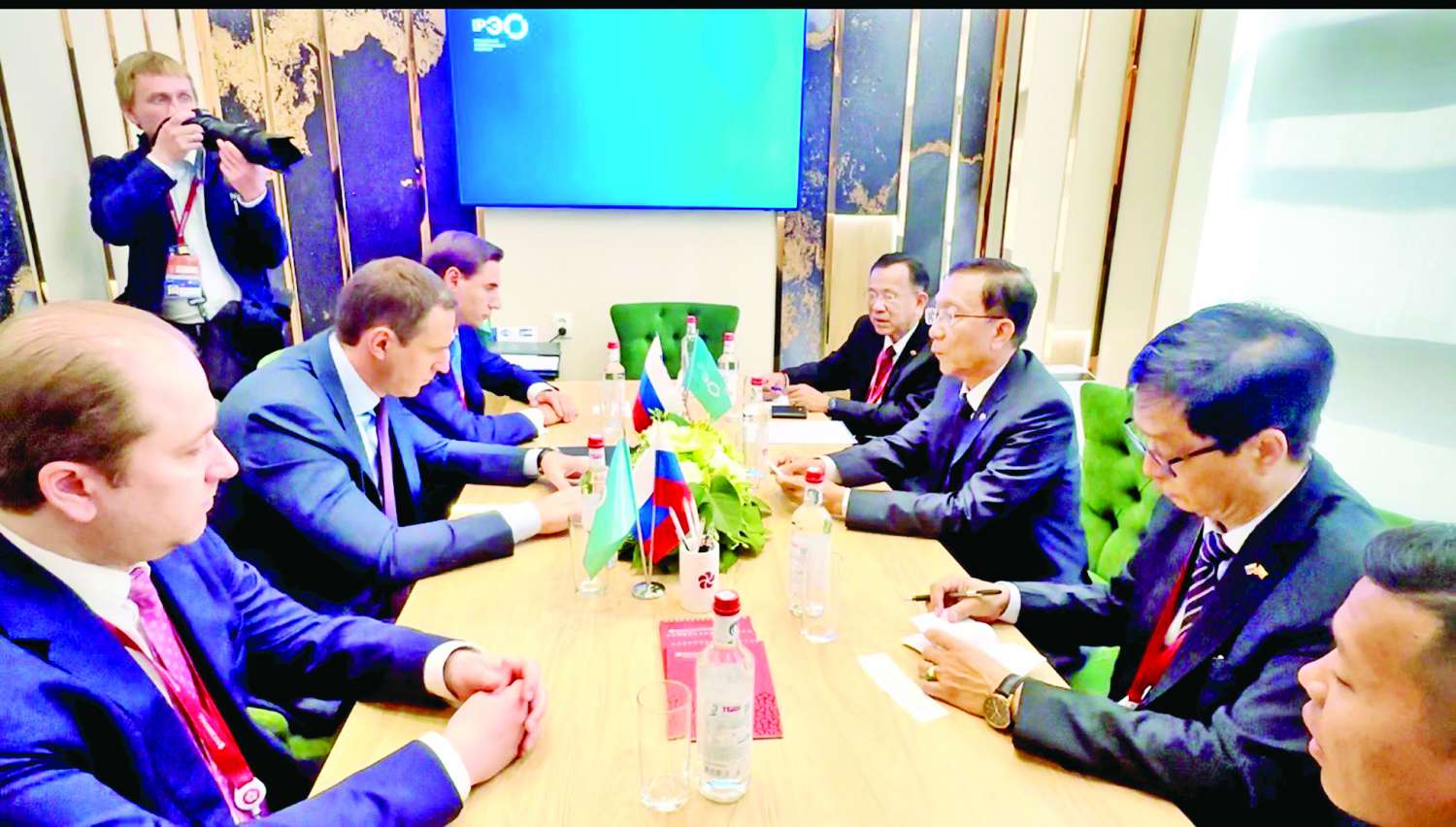 (၂၆)ကြိမ်မြောက် စိန့်ပီတာစဘတ် နိုင်ငံတကာစီးပွားရေးဖိုရမ်သို့ ဒုတိယဝန်ကြီးချုပ်နှင့် စီမံကိန်းနှင့် ဘဏ္ဍာရေးဝန်ကြီးဌာန ပြည်ထောင်စုဝန်ကြီး ဦးဆောင်သော မြန်မာကိုယ်စားလှယ်အဖွဲ့နှင့် အတူ ပြည်ထောင်စုသမ္မတ မြန်မာနိုင်ငံ ကုန်သည်များနှင့်စက်မှုလက်မှုလုပ်ငန်းရှင်များအသင်းချုပ် နှင့် ပုဂ္ဂလိကဘဏ်များမှ ကိုယ်စားလှယ် ၂၄ ဦး ပါဝင်တက်ရောက်ခဲ့ပြီး သက်ဆိုင်ရာ ကဏ္ဍအလိုက် စီးပွား ရေးအဖွဲ့အစည်းများနှင့် တွေ့ဆုံ၍ ပူးပေါင်းဆောင်ရွက်ရေးဆိုင်ရာကိစ္စရပ်များကို ဆွေးနွေးခဲ့ ကြောင်း သိရသည်။