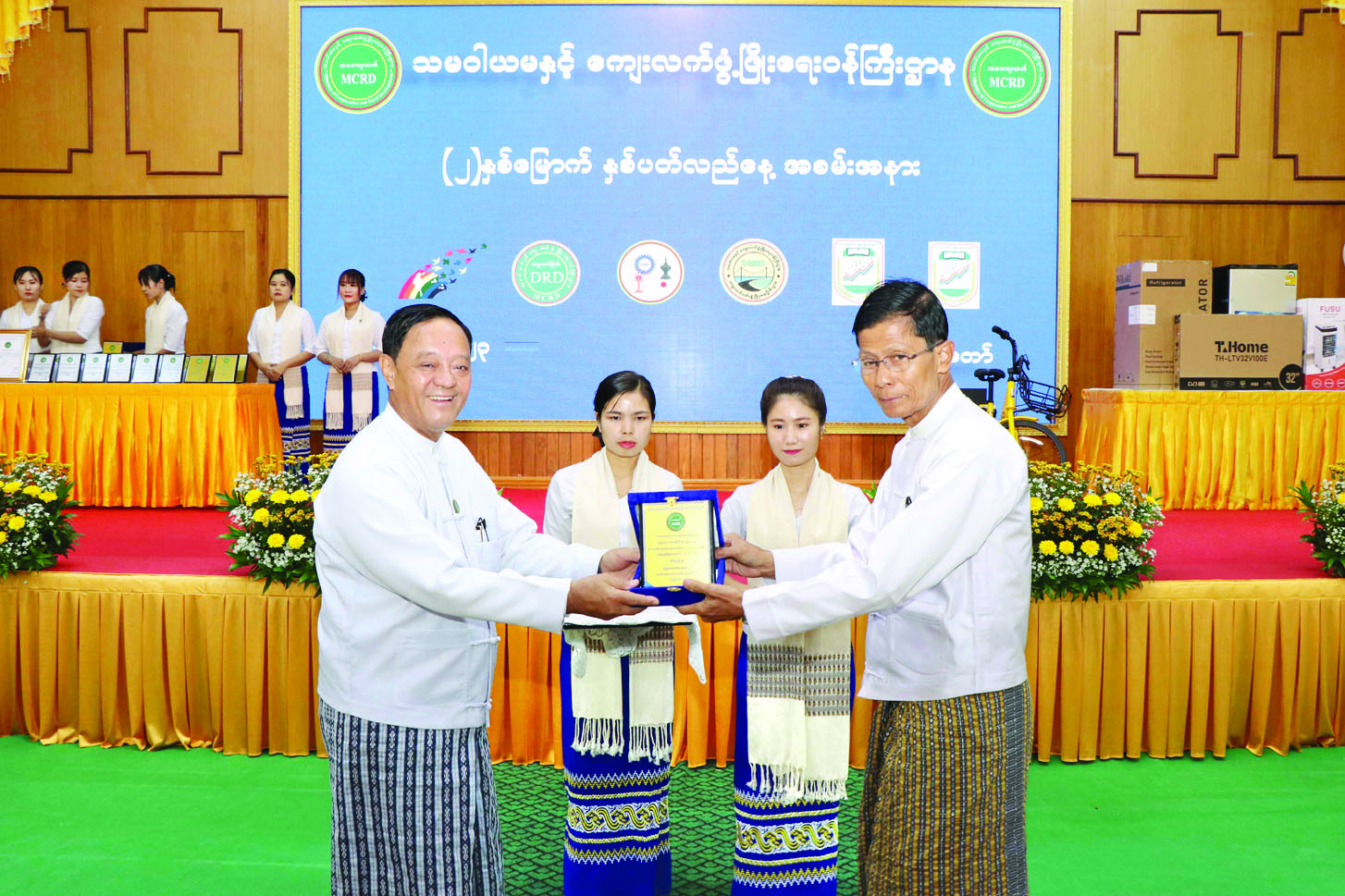 ယင်းနောက် ပတ်ဝန်းကျင် စီမံခန့်ခွဲမှုကောင်းမွန်သောနေရာဒေသ(စံပြကျေးရွာ) ဆုရရှိသော ဧရာဝတီတိုင်းဒေသကြီး မော်လမြိုင်ကျွန်းမြို့နယ် မရဲ့အုန်းပင်စု မြစိမ်းရောင်ကျေးရွာ အား ပြည်ထောင်စုဝန်ကြီးက ဂုဏ်ပြုဆုတံဆိပ်နှင့် ဂုဏ်ပြုငွေများ ပေးအပ်ချီးမြှင့်ခဲ့ပြီး ပြည်ထောင်စု ဝန်ကြီးရုံး၊ ဦးစီးဌာနများနှင့် တက္ကသိုလ်များမှ ဝန်ထမ်းများအတွက် ဝတ်စုံများ ထောက်ပံ့ပေးအပ်ရာ အမြဲတမ်းအတွင်းဝန်၊ ညွှန်ကြားရေးမှူးချုပ်များနှင့် ပါမောက္ခချုပ်များက လက်ခံရယူ ကြသည်။