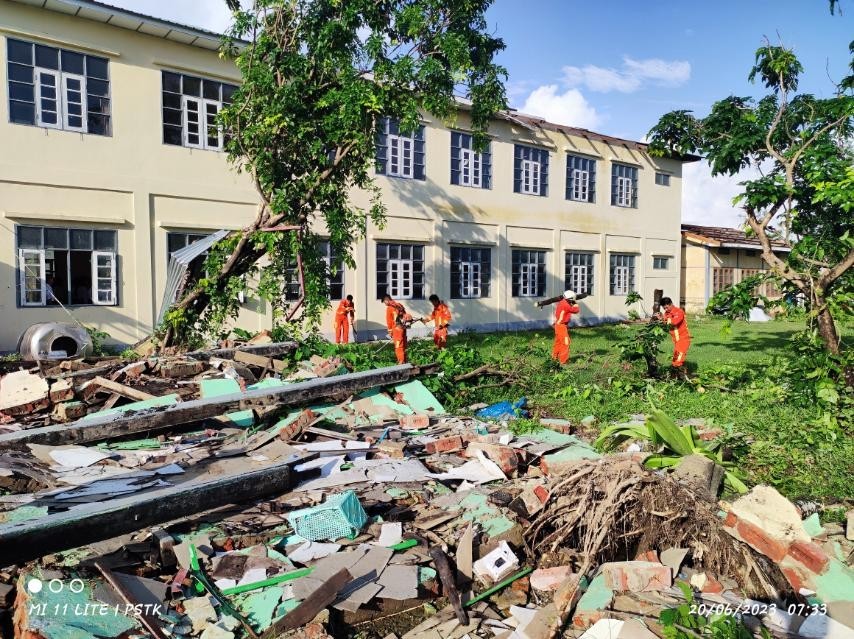 အလားတူ ပုဏ္ဏားကျွန်းမြို့သို့ ရောက်ရှိနေသည့် ကူညီကယ်ဆယ်ရေးအဖွဲ့များသည် မြန်မာနိုင်ငံရဲတပ်ဖွဲ့ဝင်များ၊ မီးသတ်တပ်ဖွဲ့ဝင်များနှင့်ပူးပေါင်း၍ အခြေခံပညာအထက်တန်းကျောင်း(ခွဲ)၌ သန့်ရှင်းရေးလုပ်ငန်းများ ဆောင်ရွက်ပေးလျက်ရှိသည်။